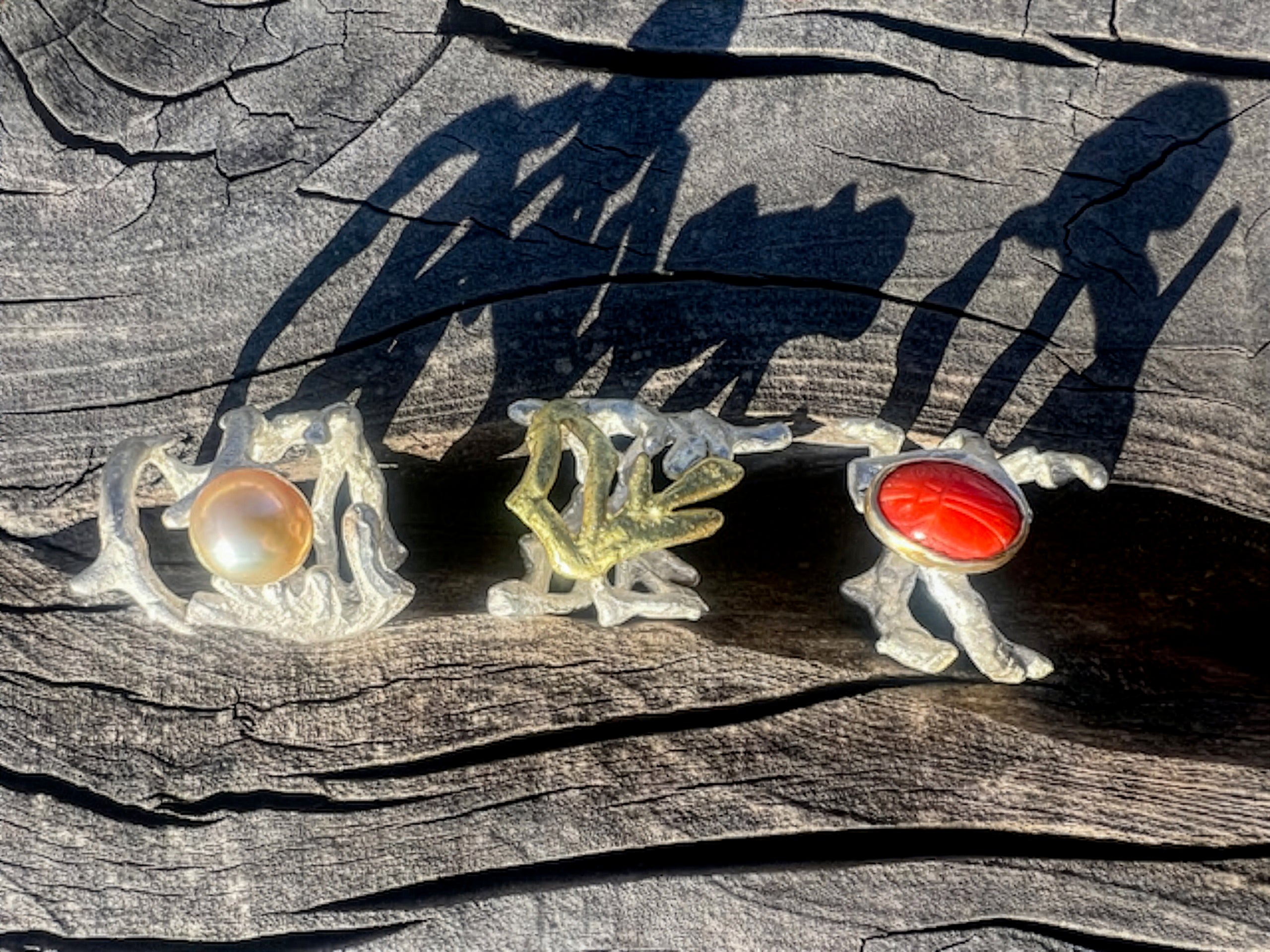 *Green Tone Opal Trio Cluster Necklace in 22k and 14k Gold with Silver Chain