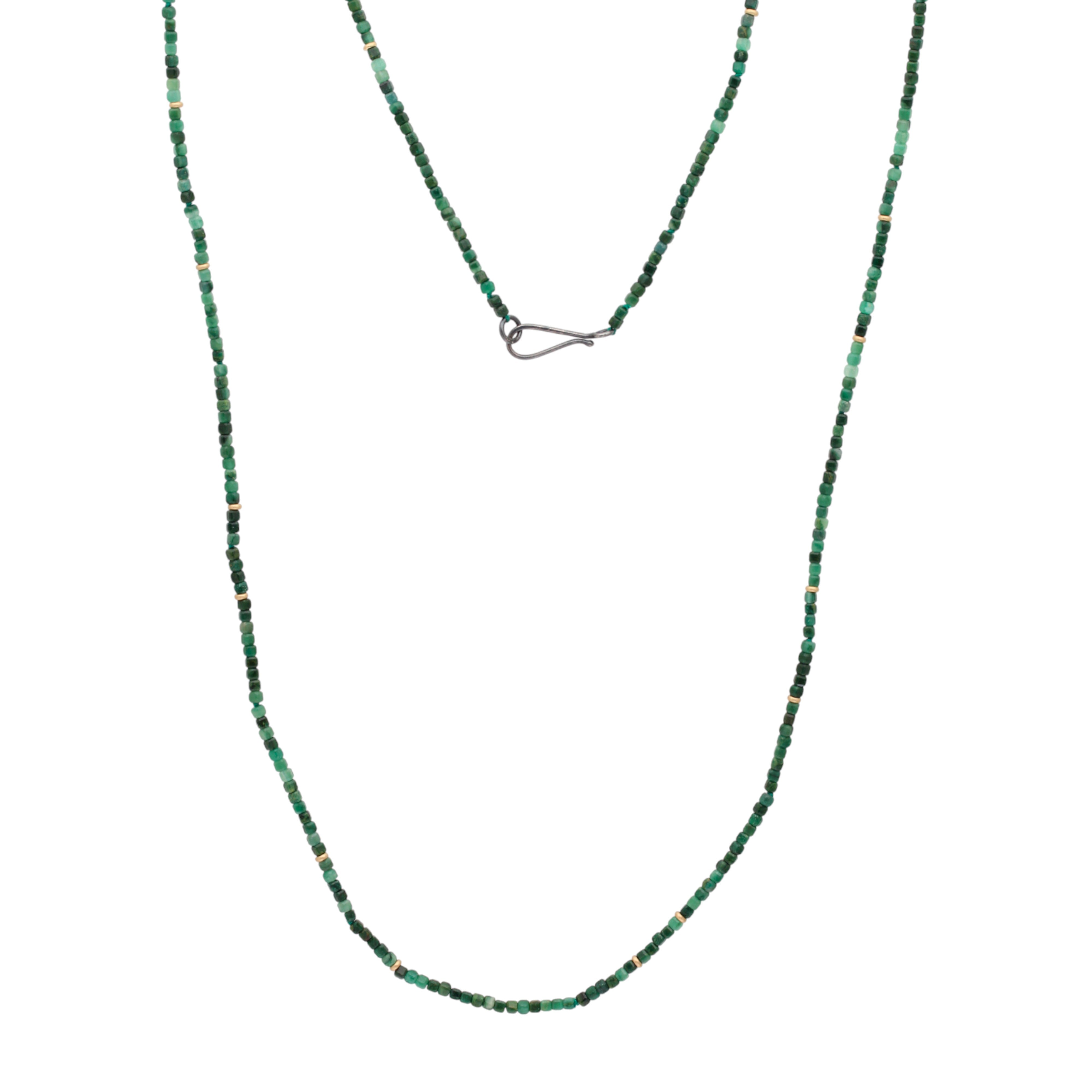 2mm Table Cut Cube Jade Necklace with 18k Gold Beads and Oxidized Silver Clasp
