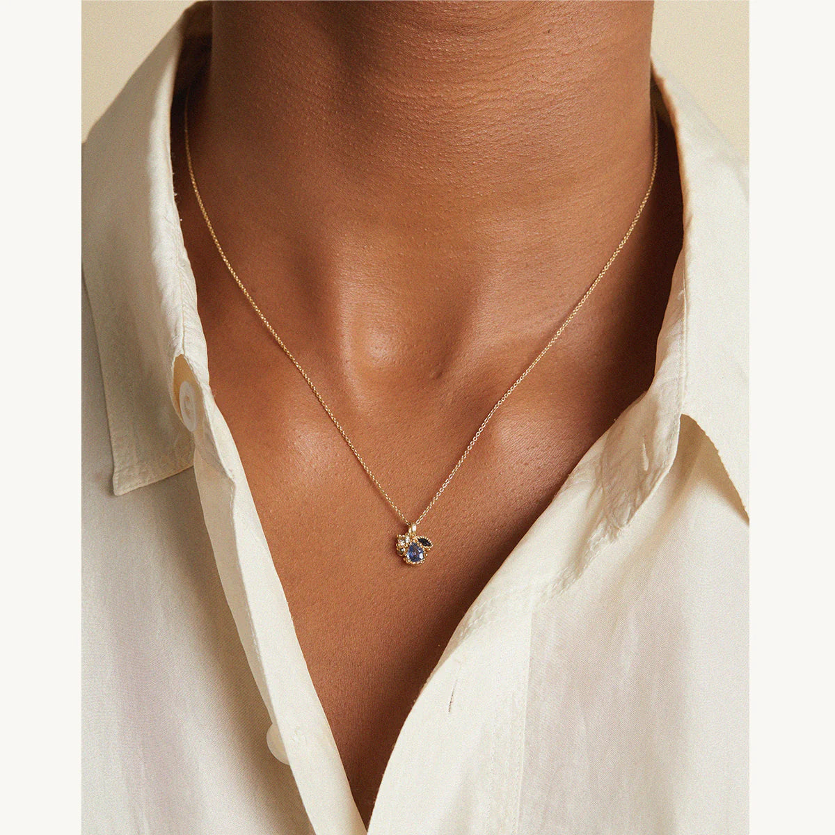 Mixed Cut Sapphire and Diamond Cluster Pendant in 14k Yellow Gold