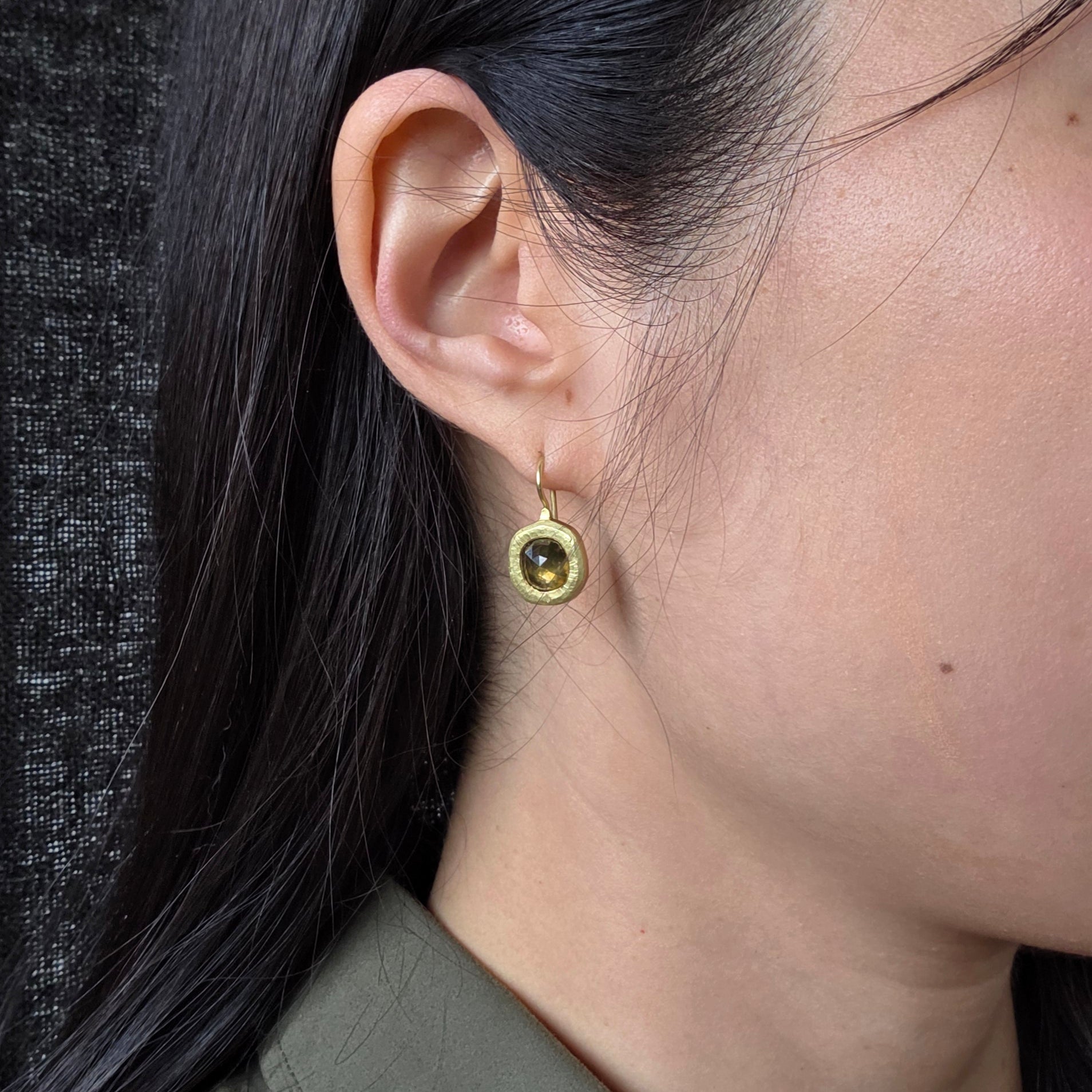 Rustic Cognac Diamond Dangle Earrings in 18k Yellow Gold