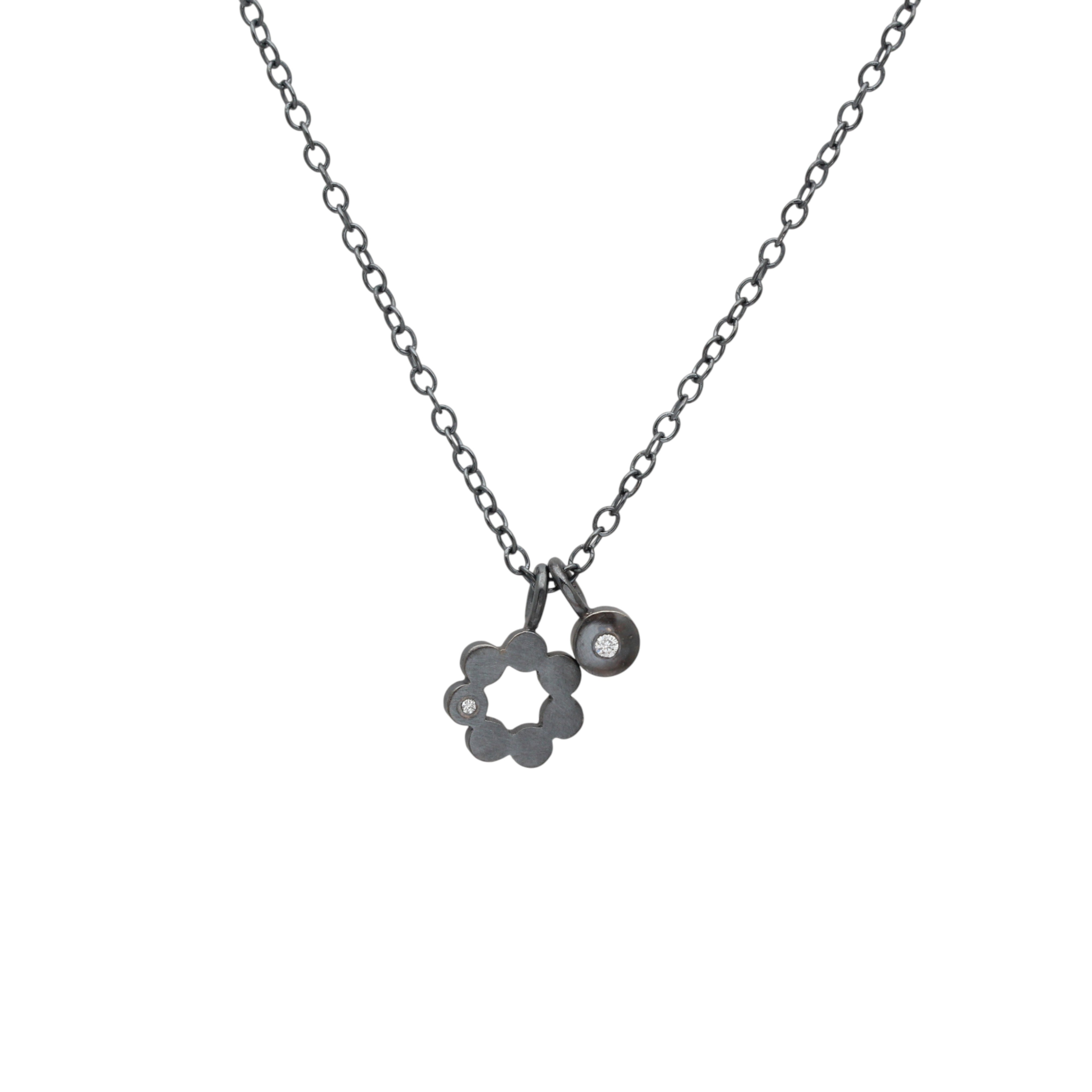 Elisa is a graduate of the California College of Arts and Crafts in Oakland, California, and has maintained a jewelry studio since 1994. Her work is influenced by industrial design and architecture, with an aesthetic that lends itself to modern designs. Though Elisa’s work is clean and direct with her use of simple shapes and patterns, the hand crafted qualities still remain visible. Every piece of jewelry is handmade by Elisa in her Oakland studio. Using repetition of form and change of scale, she crafts each piece into modern and classic wearable art.