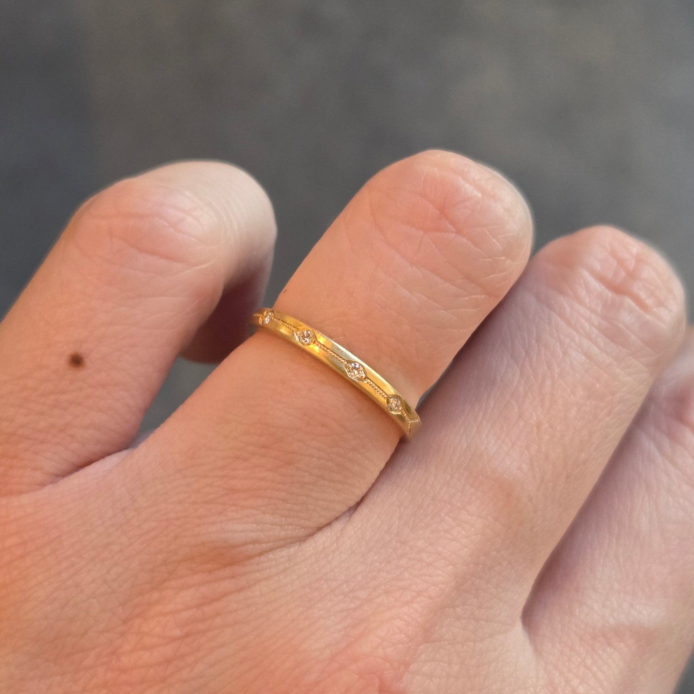Lauren started her traditional goldsmithing studies at The North Bennet Street School in Boston. Shortly after, she attended Revere Academy of Jewelry Arts in San Francisco where she focused on professional goldsmithing, diamond setting, along with basic hand engraving techniques. After working in the industry and graduating from from the bench jeweler program with Alan Revere, Lauren attended the GRS School in Emporia, Kansas, for advanced hand engraving classes.With her newly improved skill set, Lauren began designing and fabricating her own collection of fine jewelry including custom wedding and engagement rings.