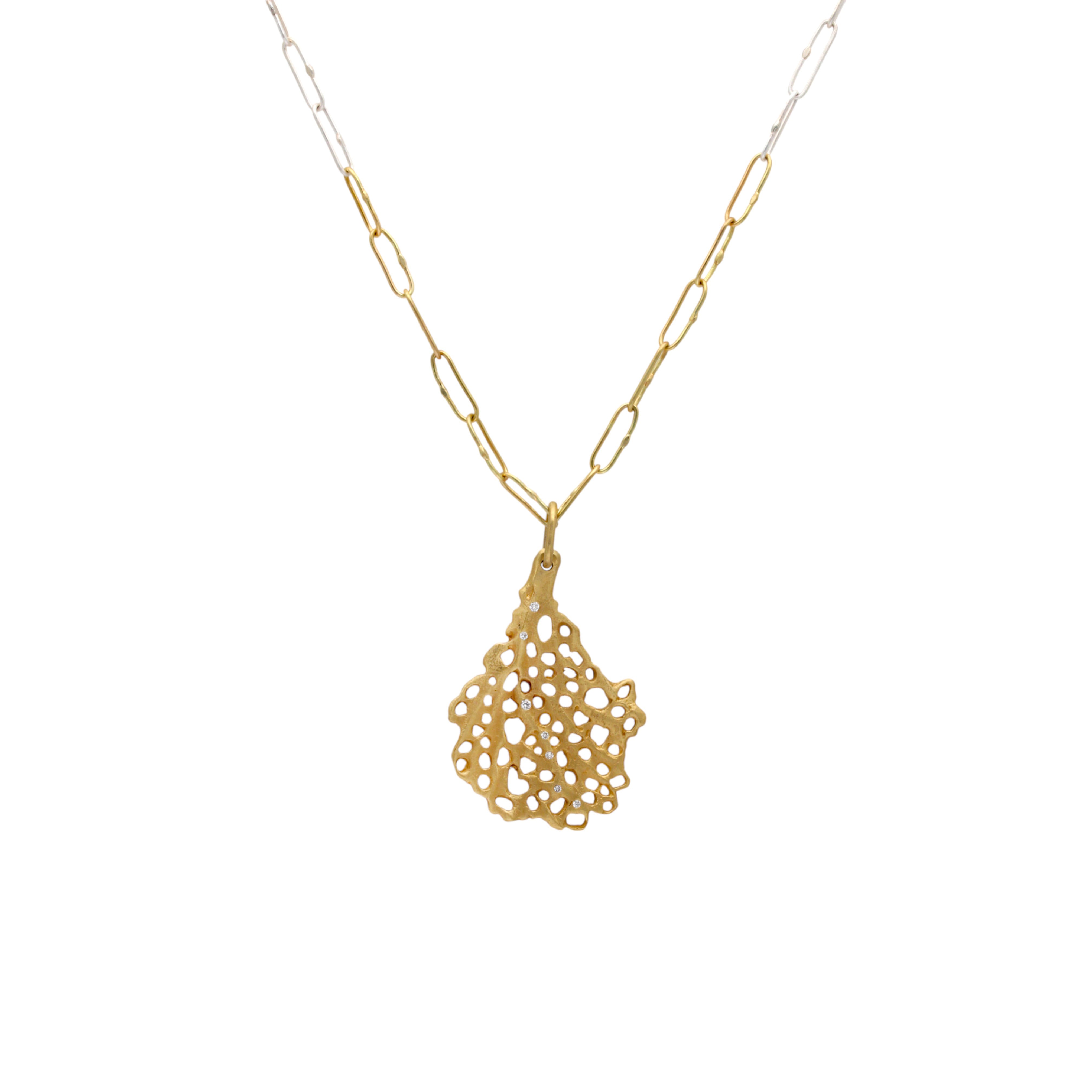 Koraru Coral Pendant with 7 White Diamonds in 18k Yellow Gold