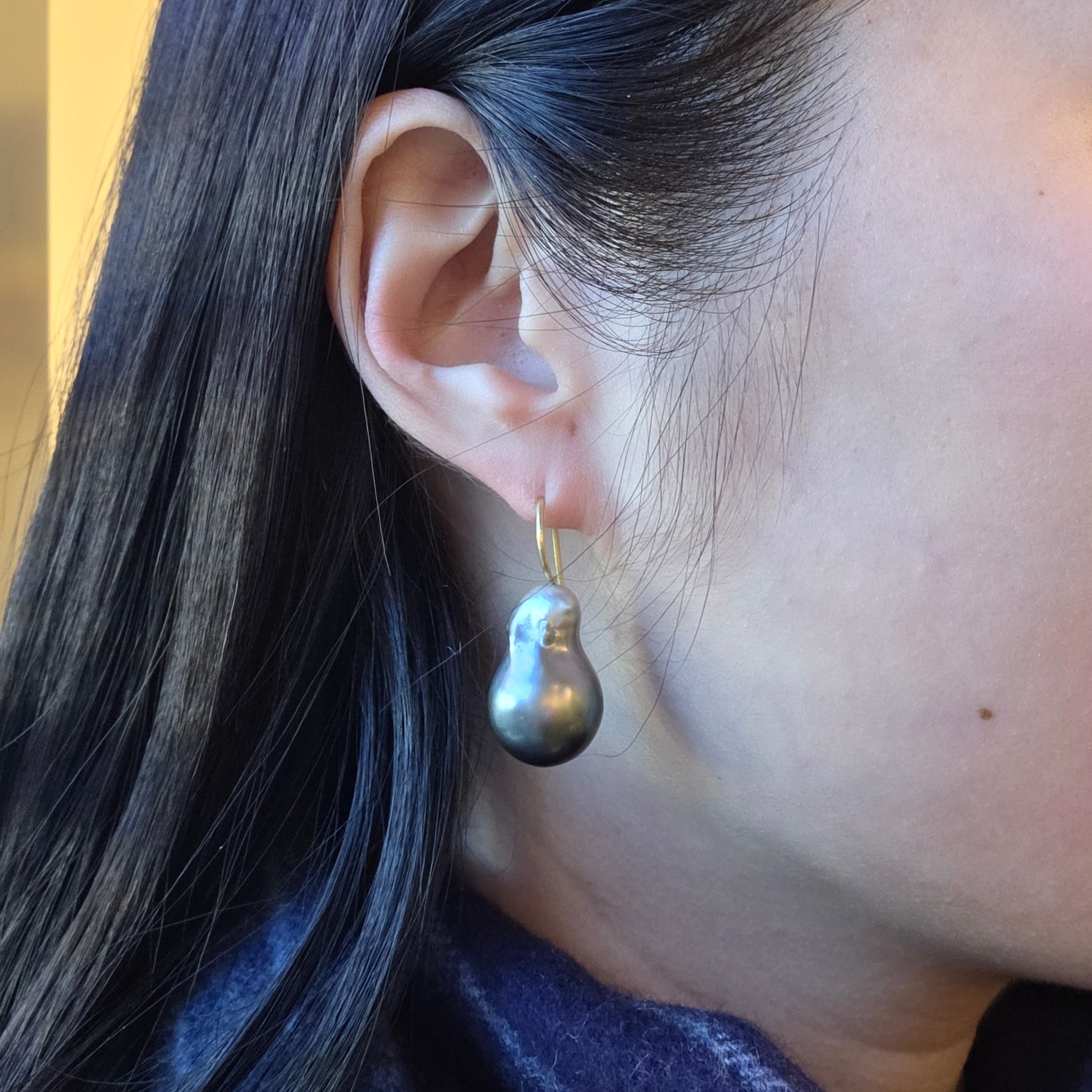 Grey Baroque Pearl Earrings in 18k Yellow Gold