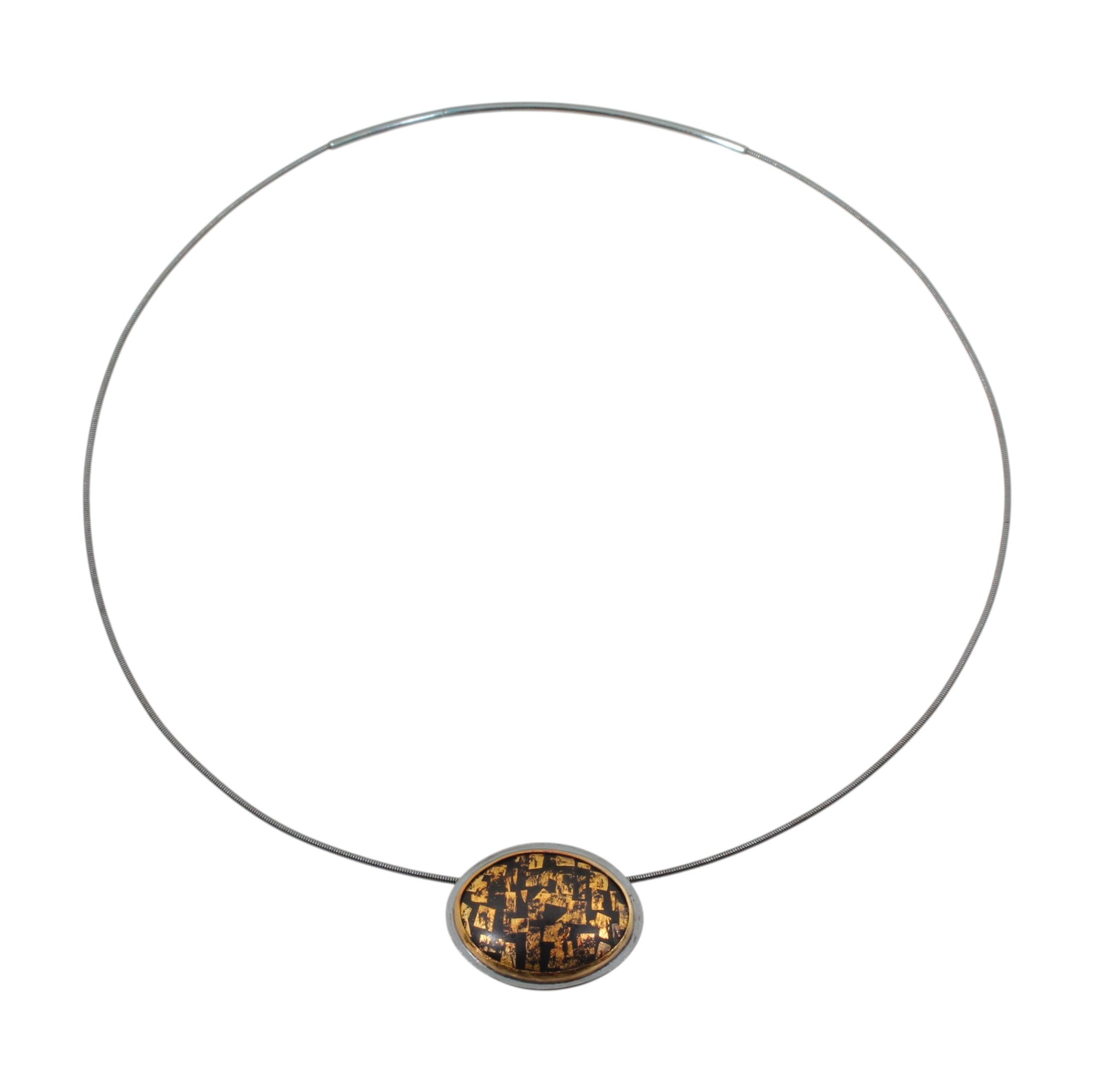 Klimt Enamel Pendant in 18k Yellow Gold & Oxidized Silver