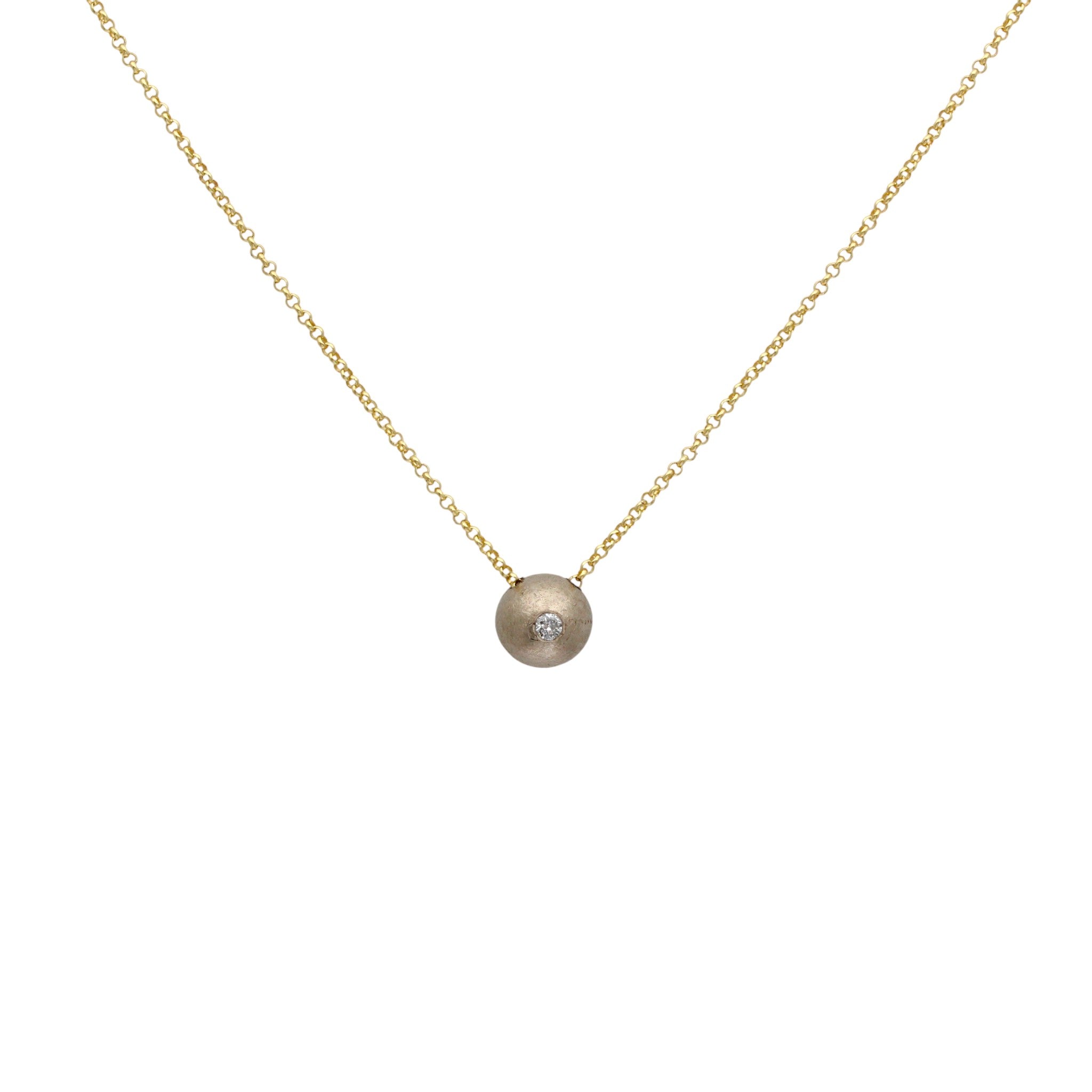 Hatachi Necklace in 18k Palladium White Gold with Grey Diamond on 18k Yellow Gold Chain