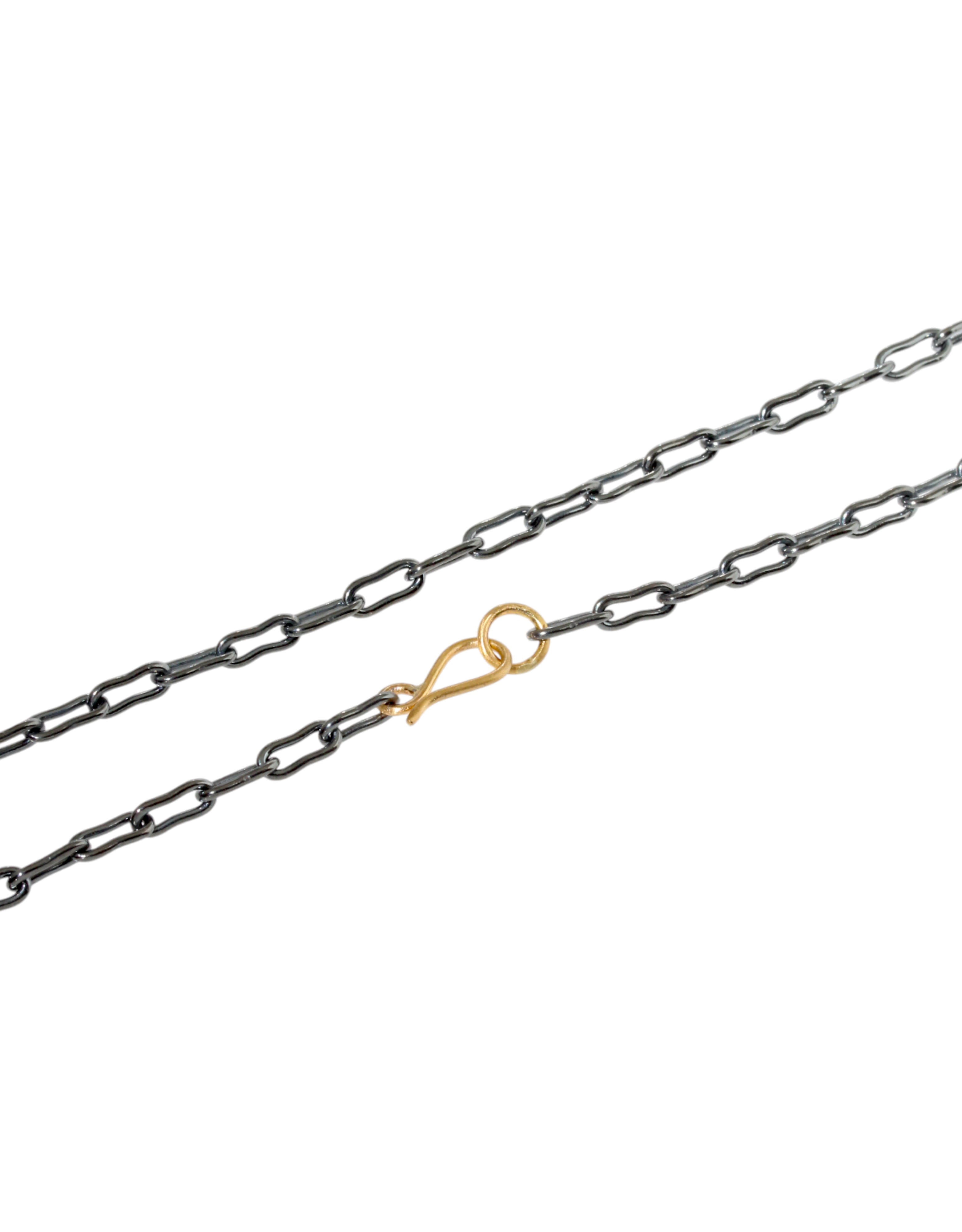 16" - 18 Gauge Bone Link Chain in Oxidized Silver and 18k Goldoxidized silver, 18k yellow gold clasp16" length
