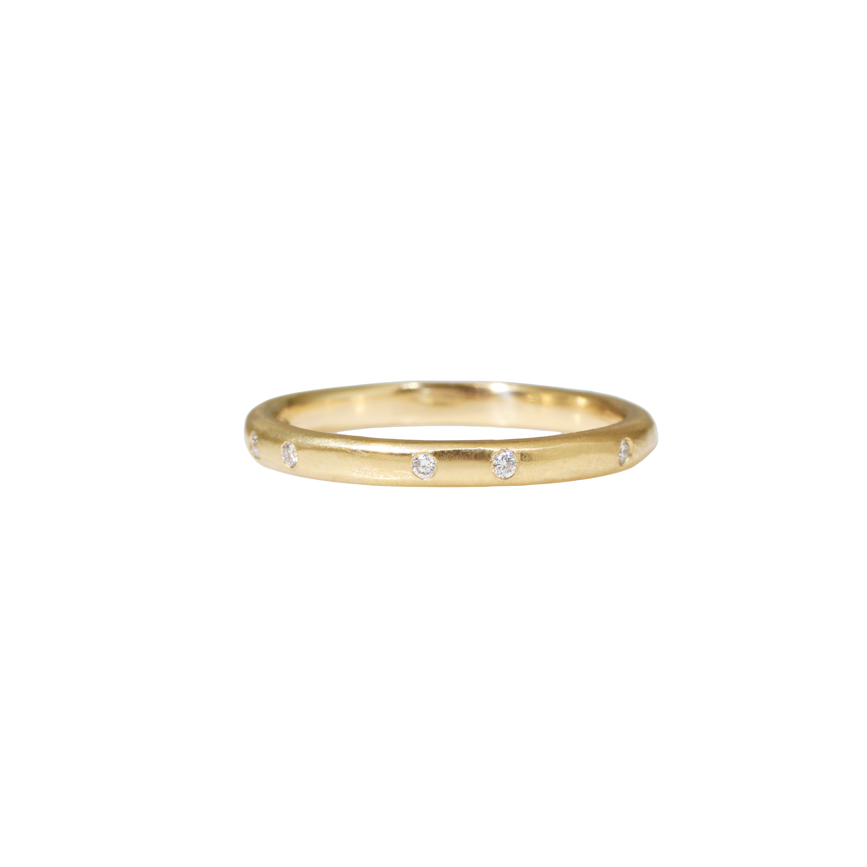 2.25 mm Modeled Band in 14k Yellow Gold with White Diamonds14k yellow gold, 10 - 1.2mm white diamonds2.25mm w x 1.5mm thick