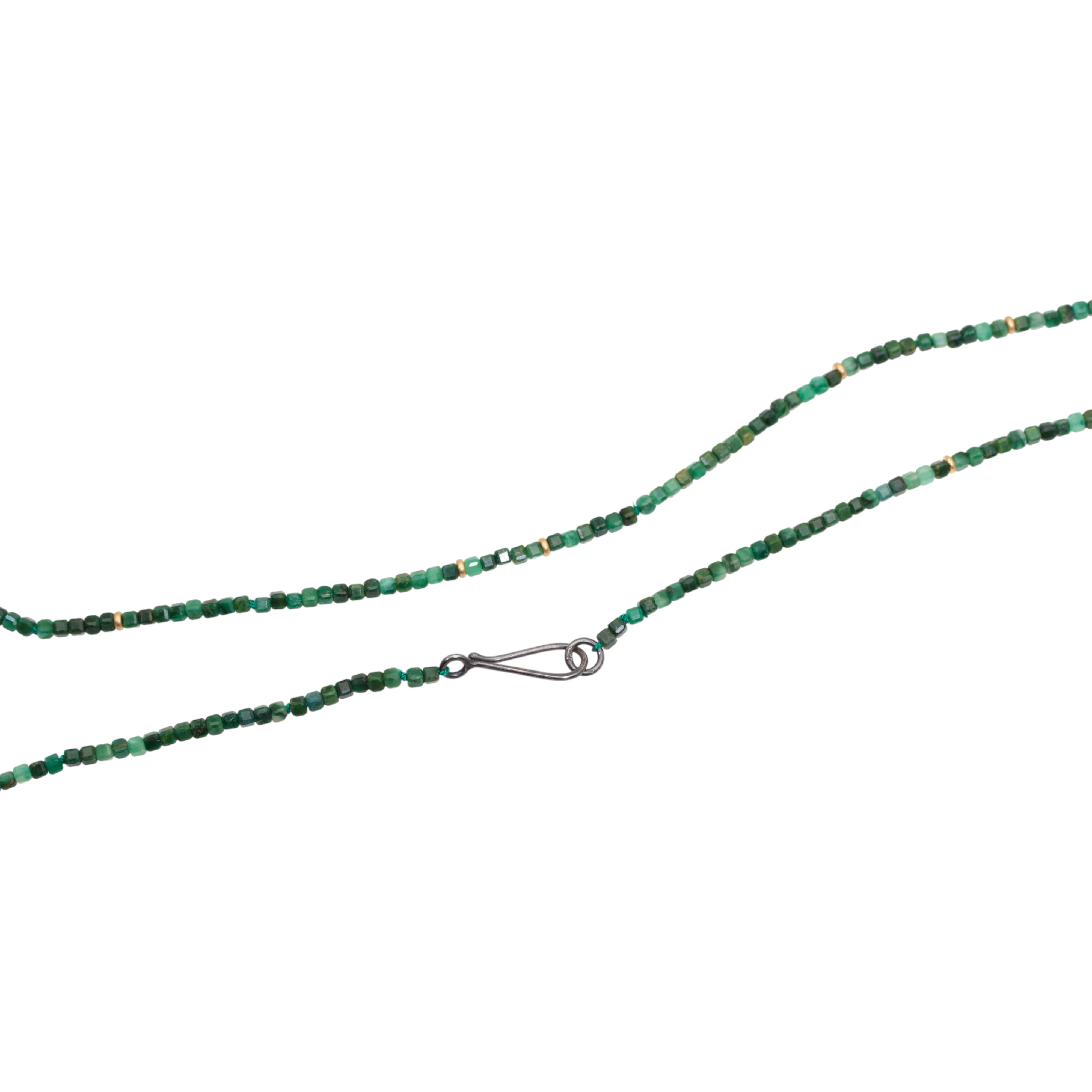2mm Table Cut Cube Jade Necklce with 18k Gold Beads and Oxidized Silver ClaspAfrican jade, 18k gold, silver, silk