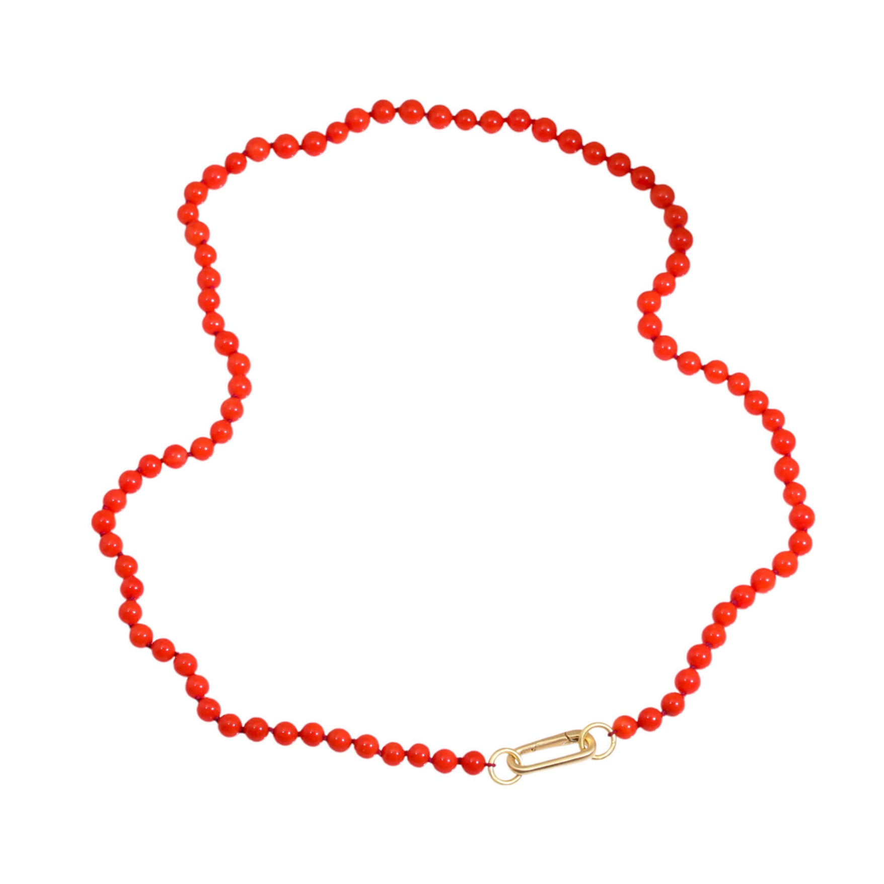 April HigashiCoral Bead Necklace with Two Jump Rings in 18k Gold6mm Round coral beads, 18k gold, silk