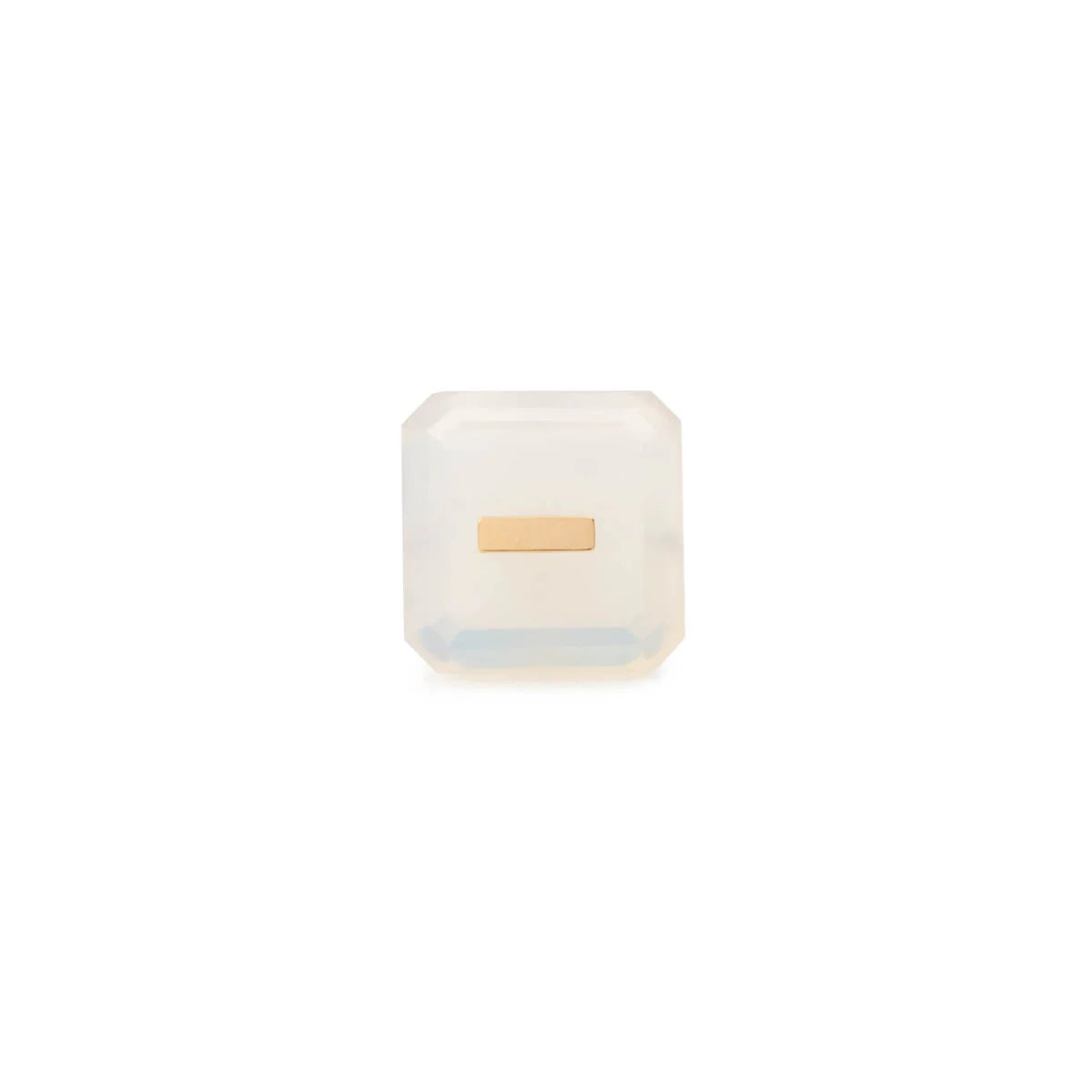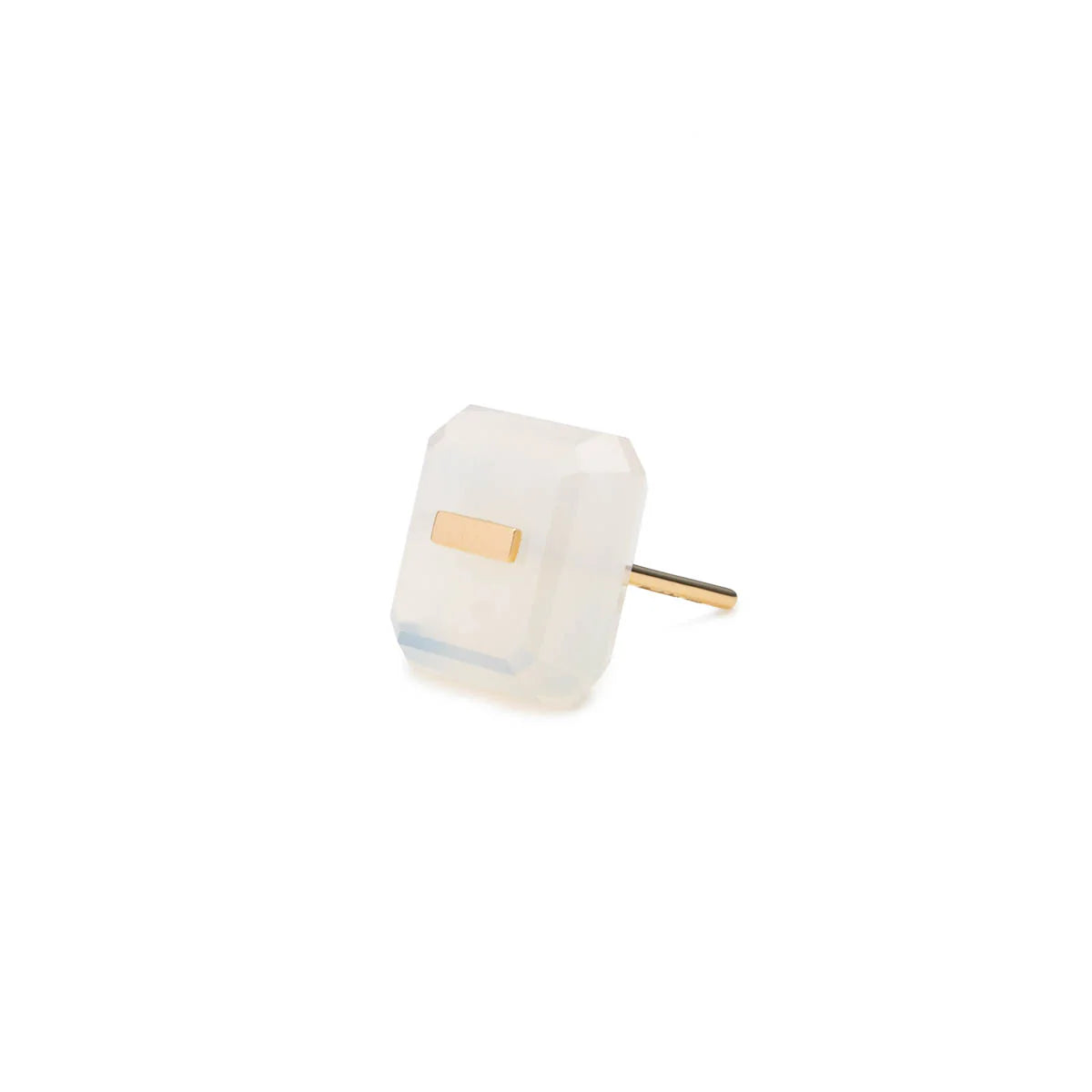 BIRD OF PARADISE White Chalcedony Naked Square Stone Post Earring in 10k Yellow Gold