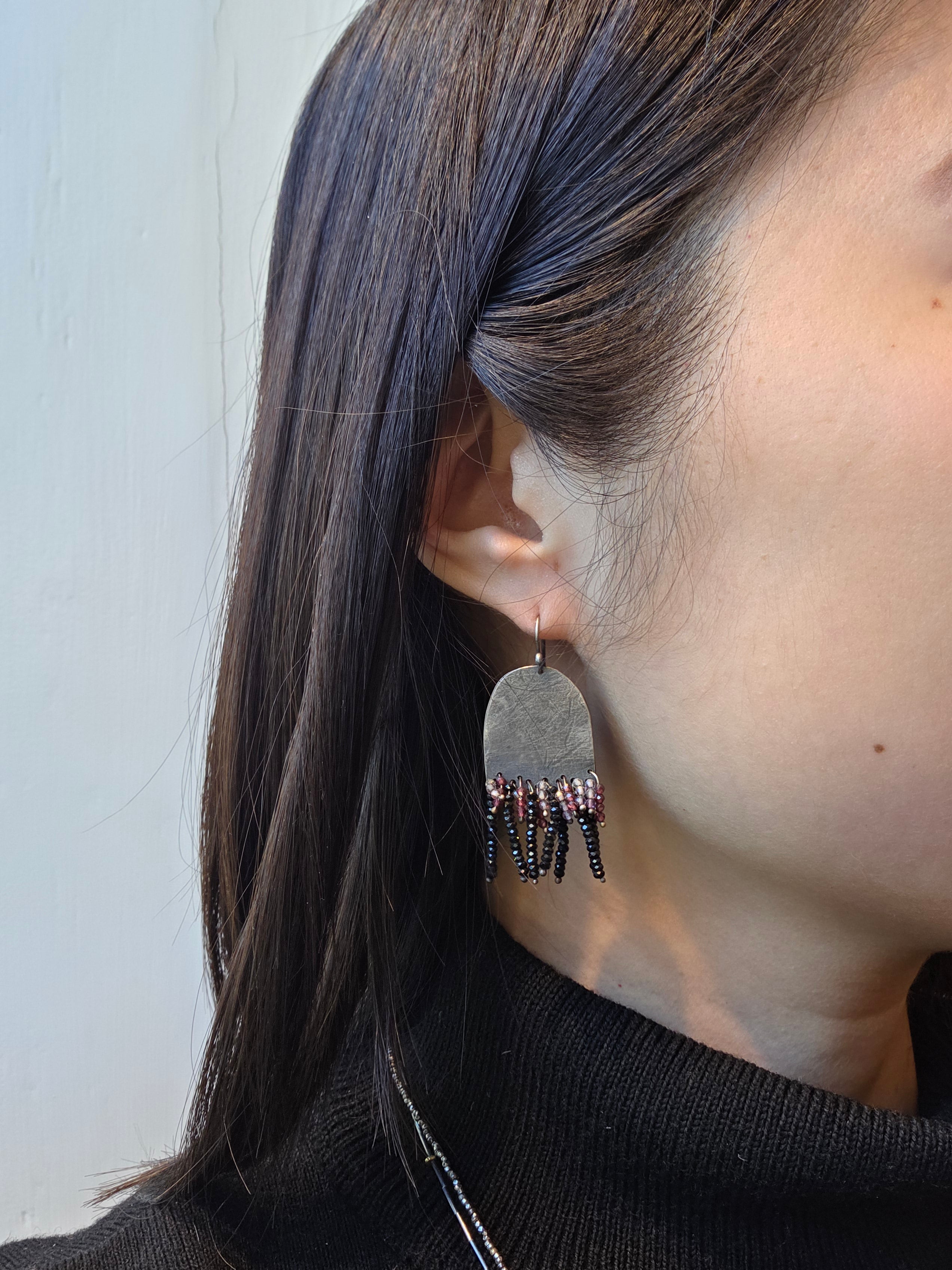 Black Spinel and Garnet Dome Earringsgarnet beads, spinel beads, oxidized silver