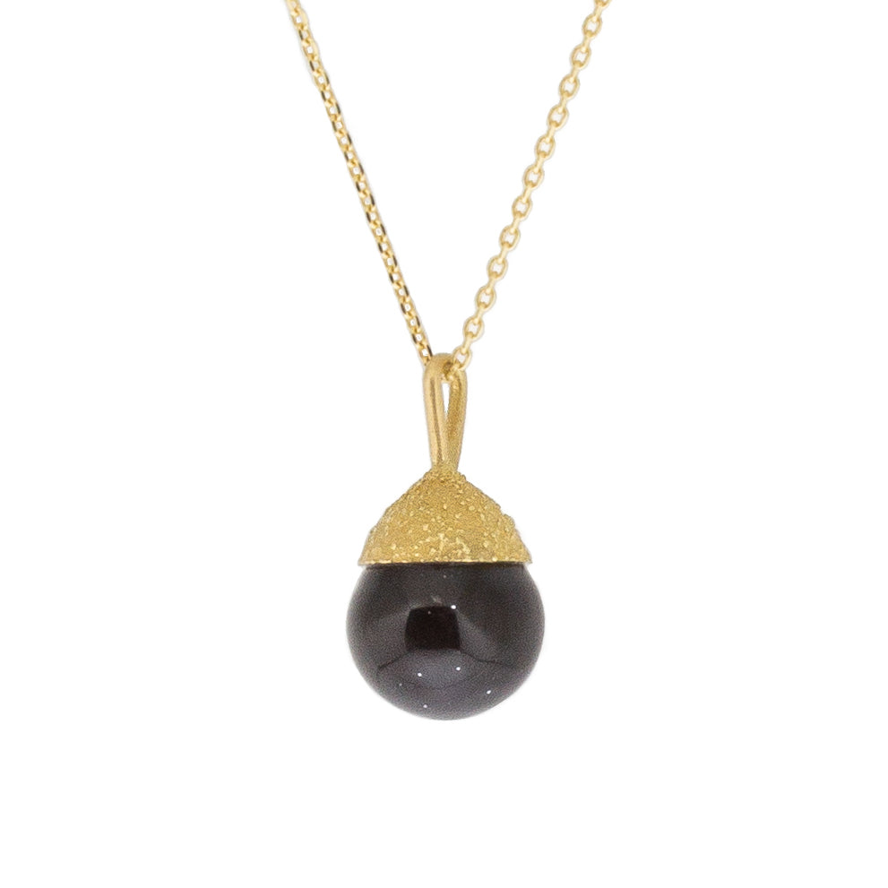 Black Tahitian Pearl Pendant with Sand-Textured 18k Yellow Gold Cap