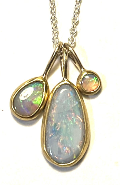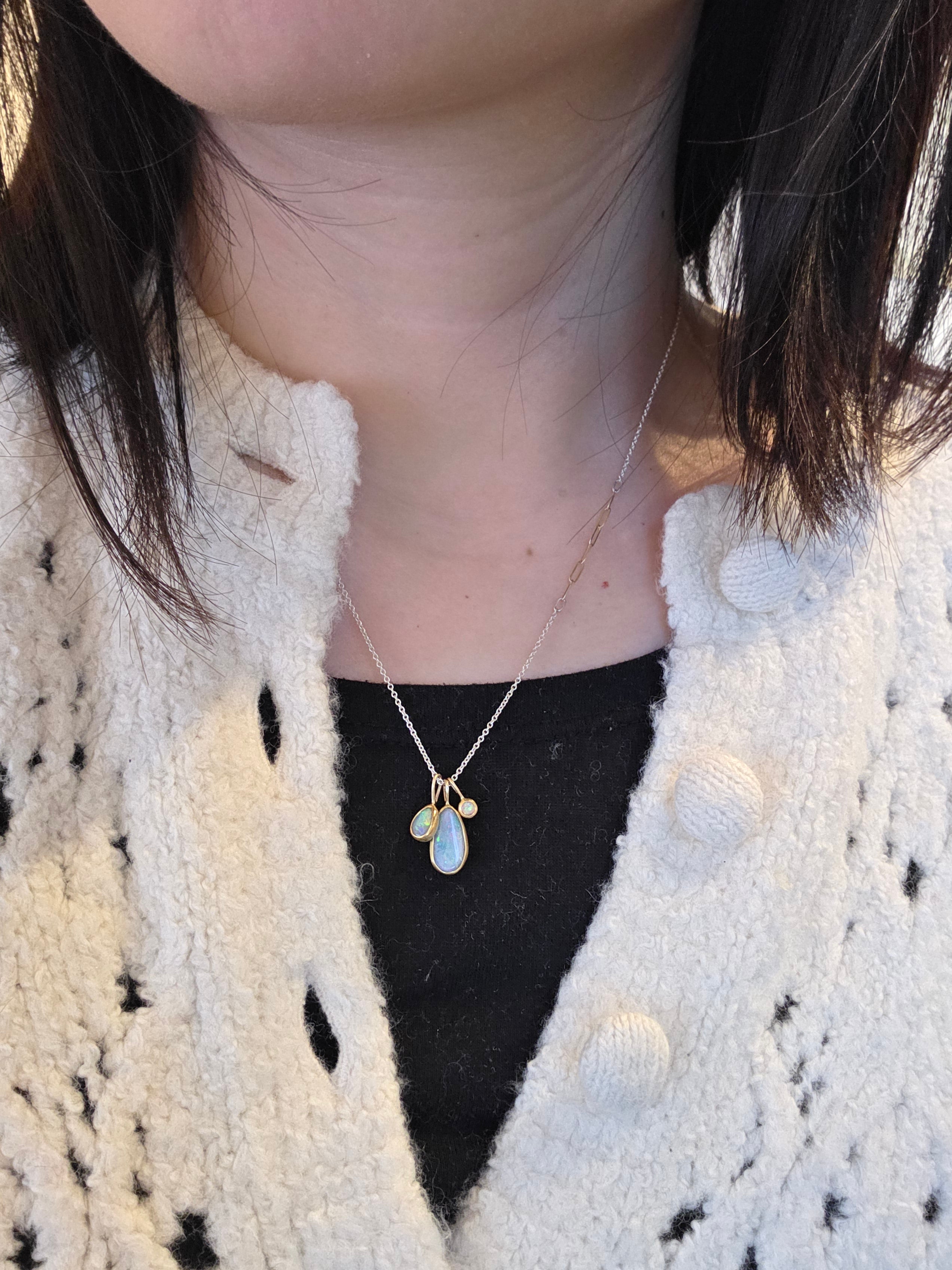 Blue Tone Opal Trio Cluster Necklace in 22k and 14k Gold with Silver Chain Recycled 22k gold, 14k gold, sterling silver, opals 18 in. chain with 2 in. extender