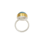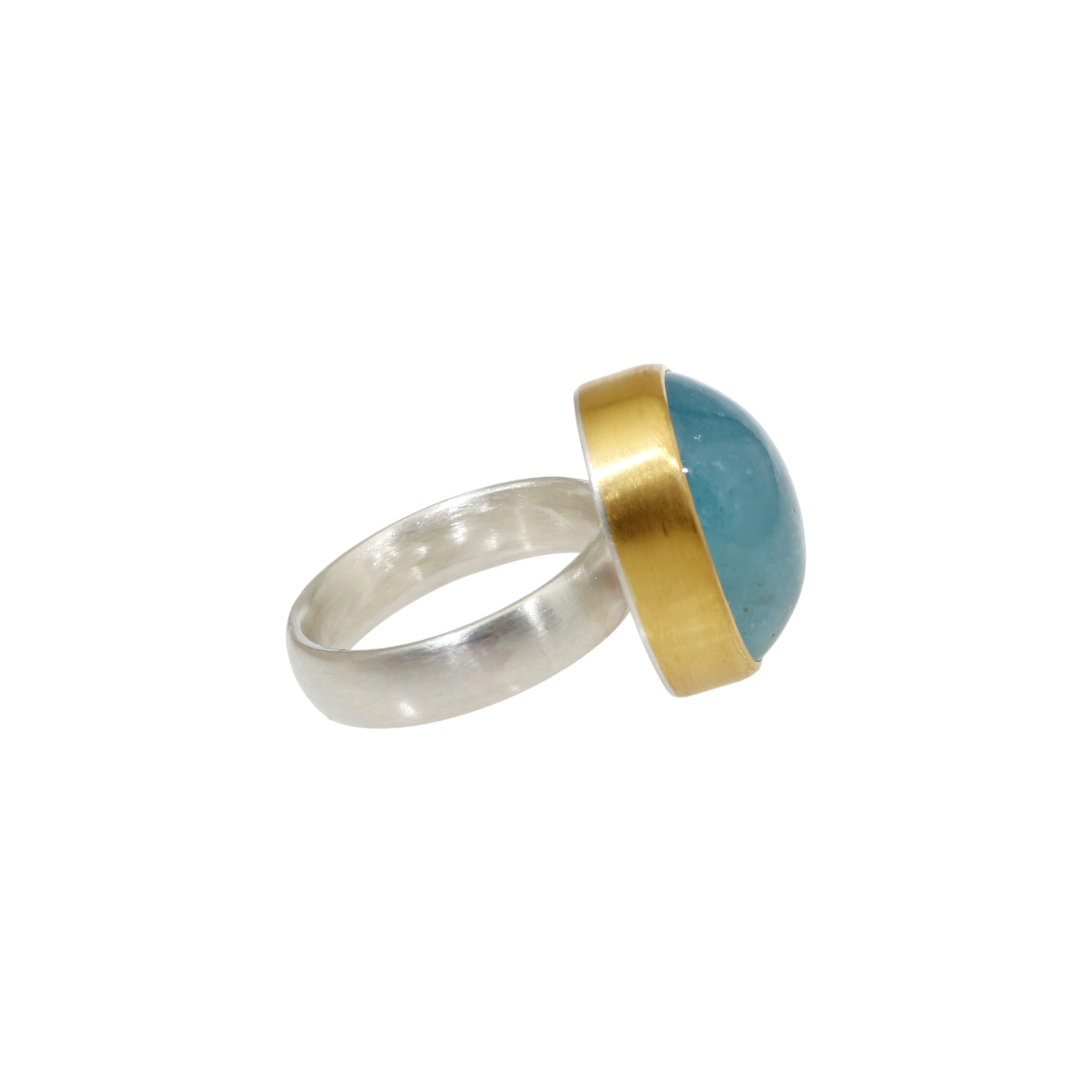 Cerulean Blue Aquamarine Ring in Silver and 22k Gold 15x20mm natural aquamarine cabochon, 22k gold setting backed with fine silver, sterling silver ring shank