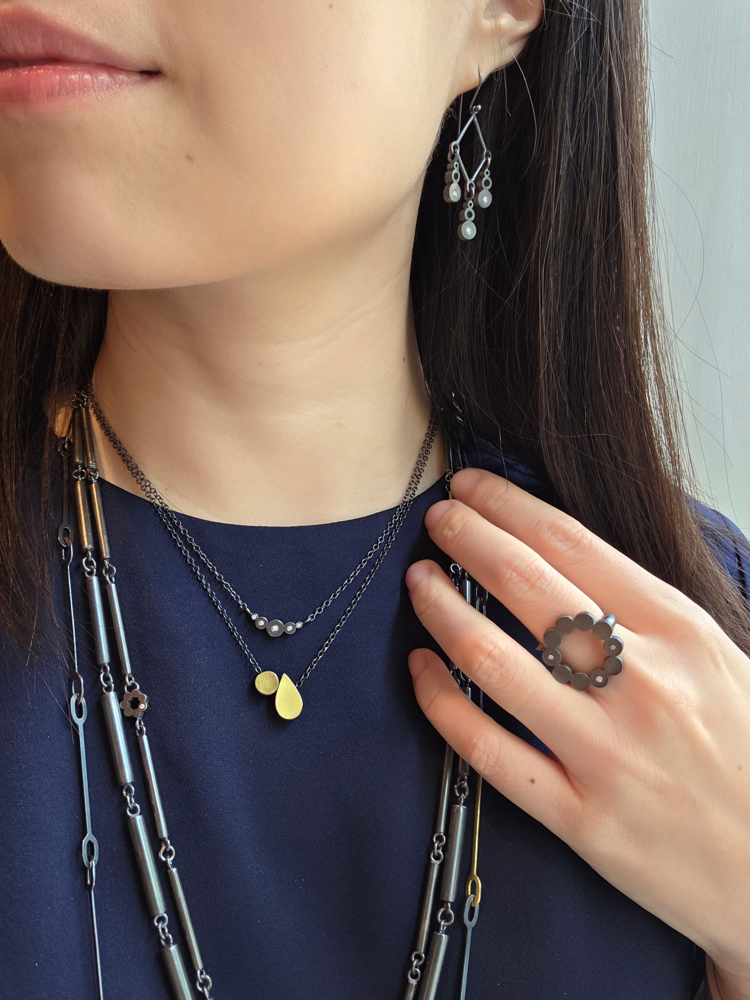 oxidized silver, 1.5mm Lab-Grown white diamonds