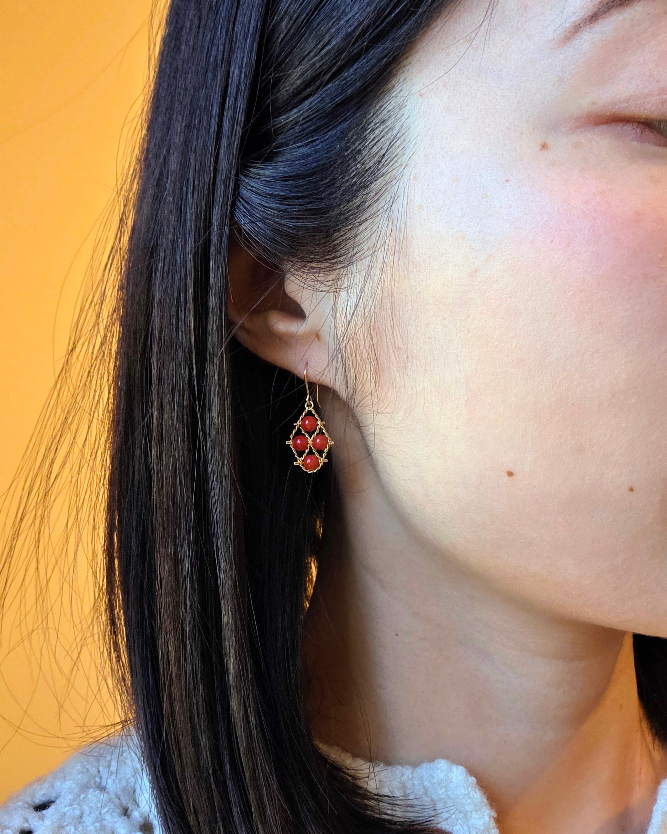 Coral Single Nugget Earringsvintage coral, gold-filled chain, hand-shaped 14k ear wires