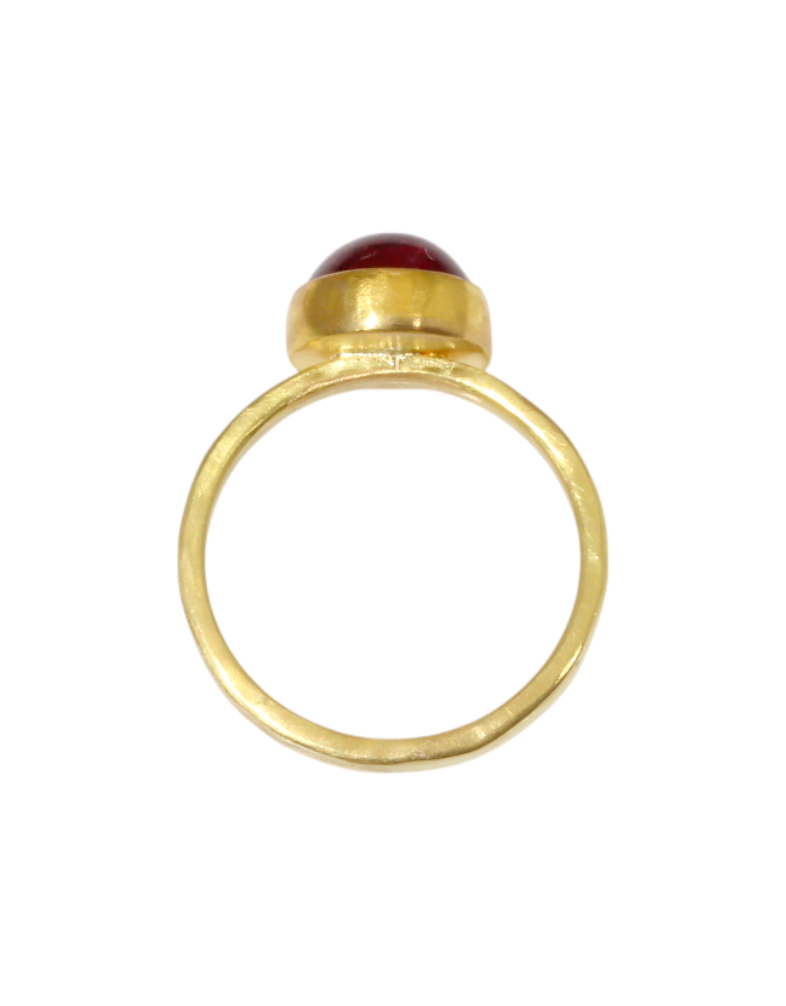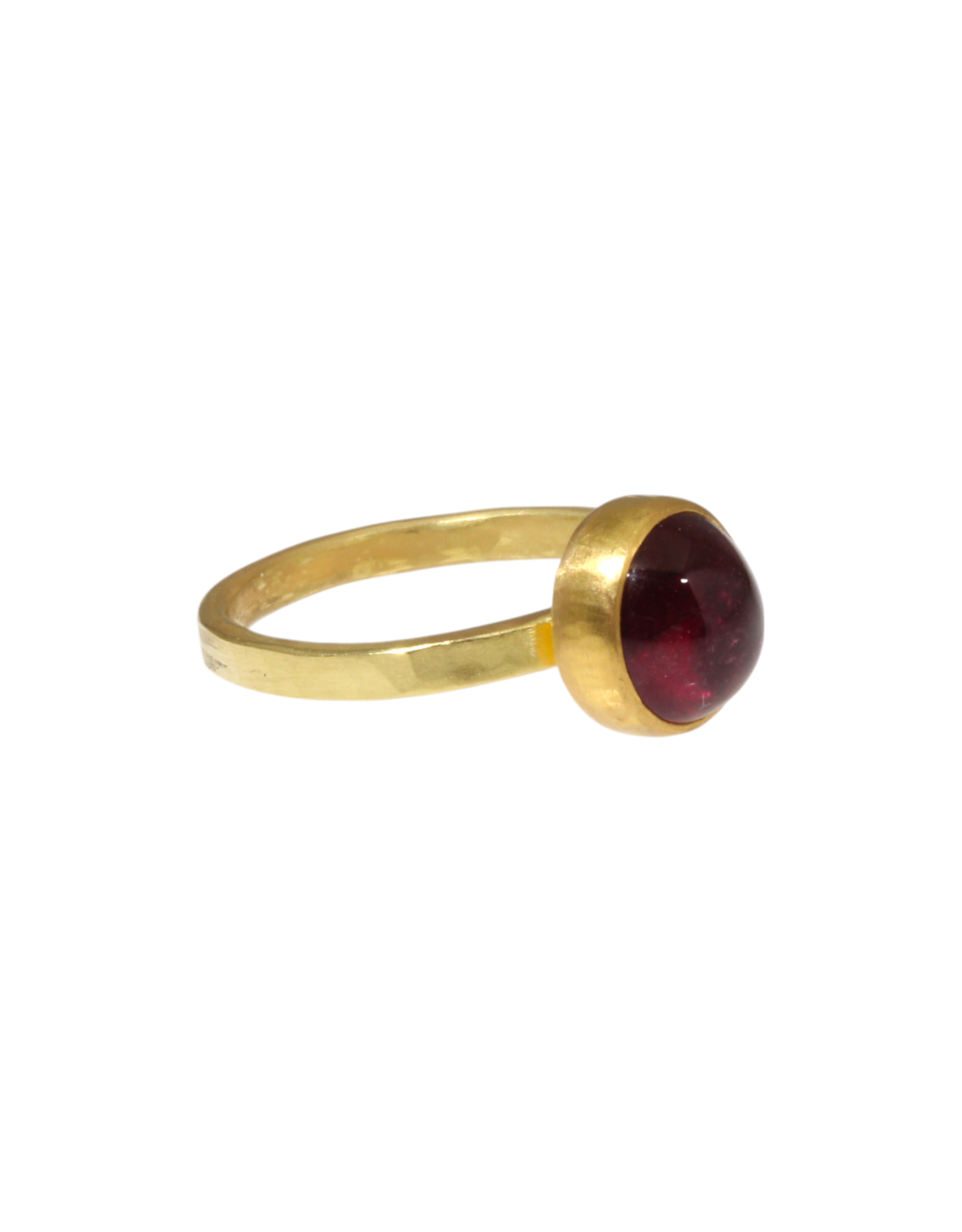 Crimson Tourmaline Ring in 22k and 18k Gold9.5mm crimson tourmaline cabochon, set in 22k yellow gold bezel, 18k yellow gold ring