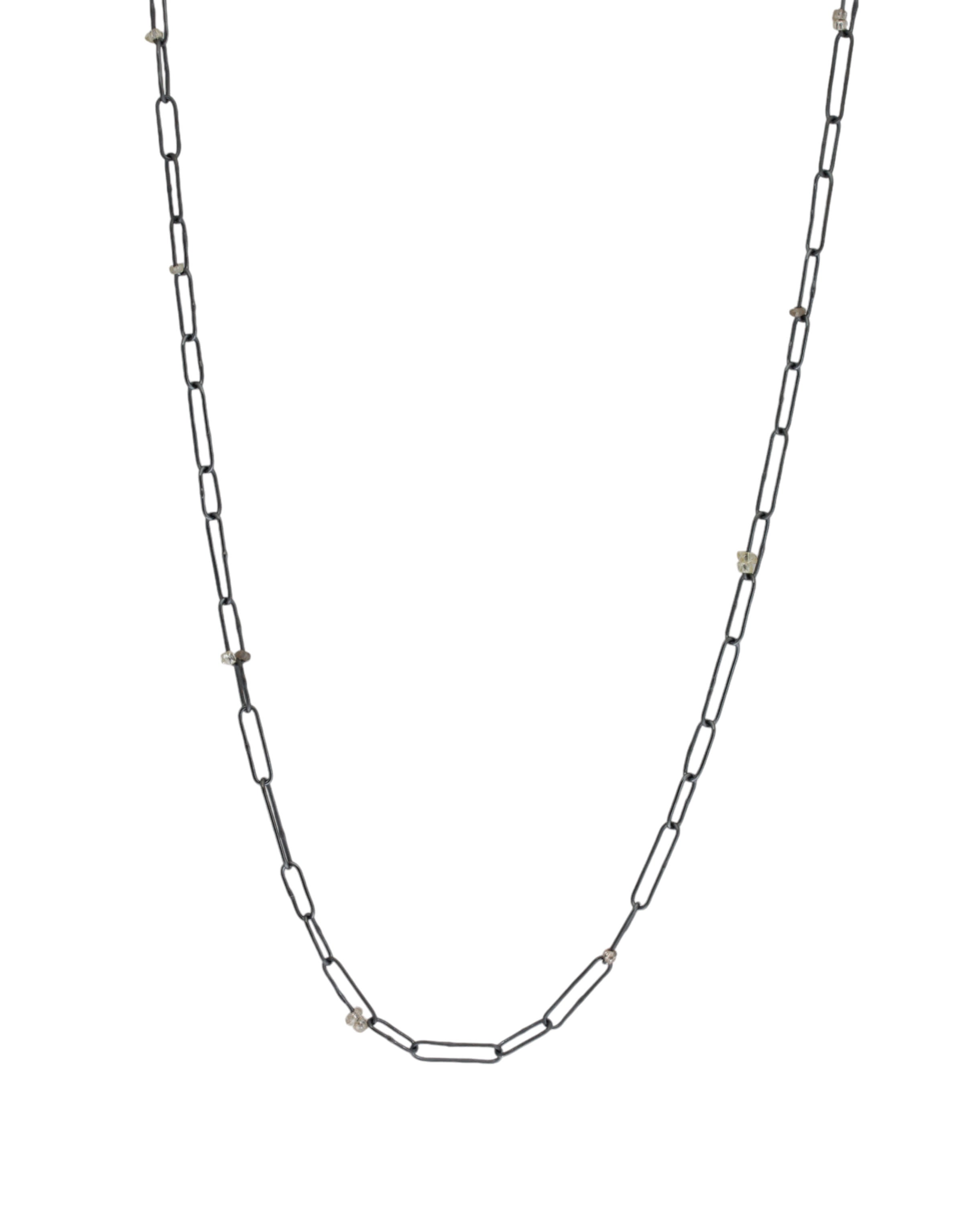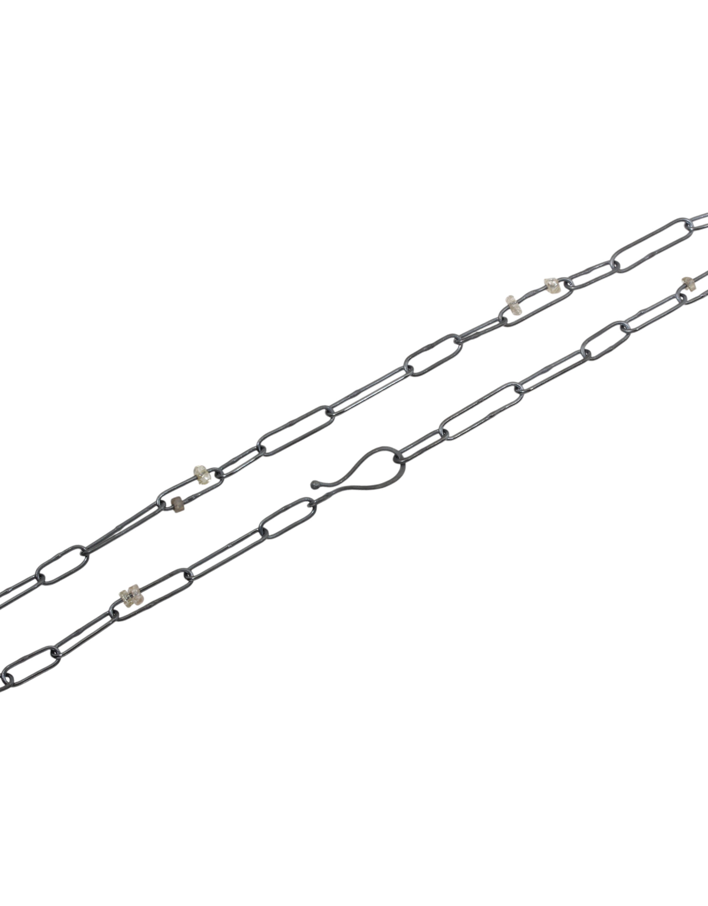 Custom Abacus Chain in Oxidized Silver and Industrial Diamonds Beads