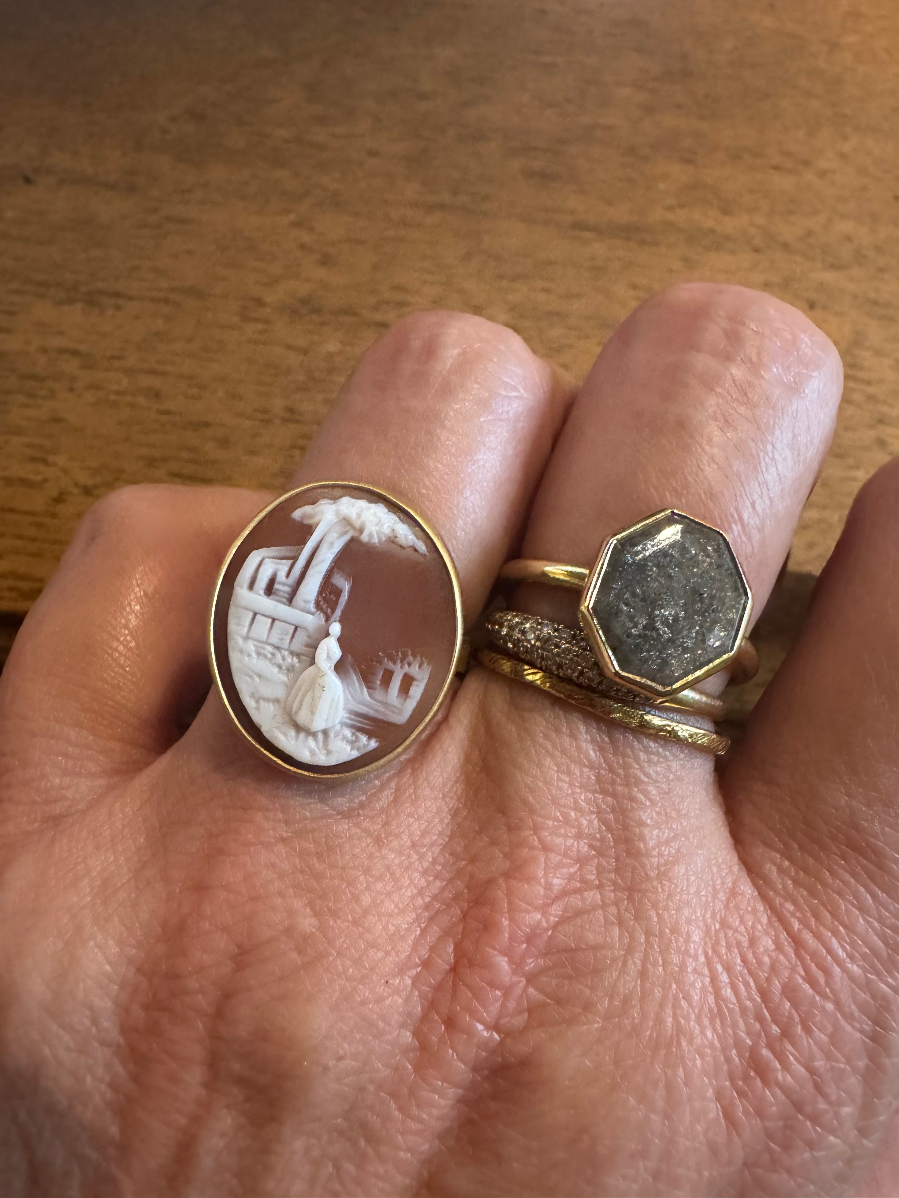 April Higashi Custom Cameo Ring in 22k Gold with 18k Gold Shank Silver Backplate