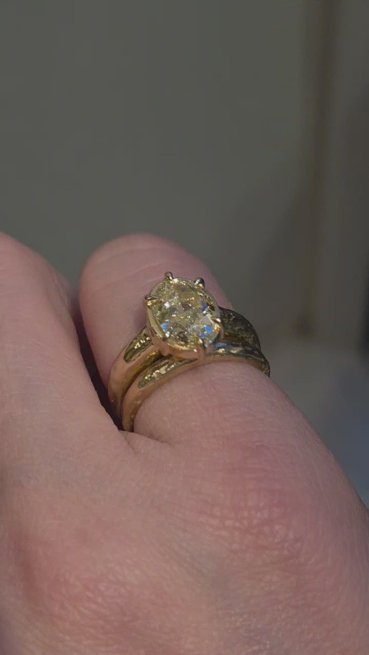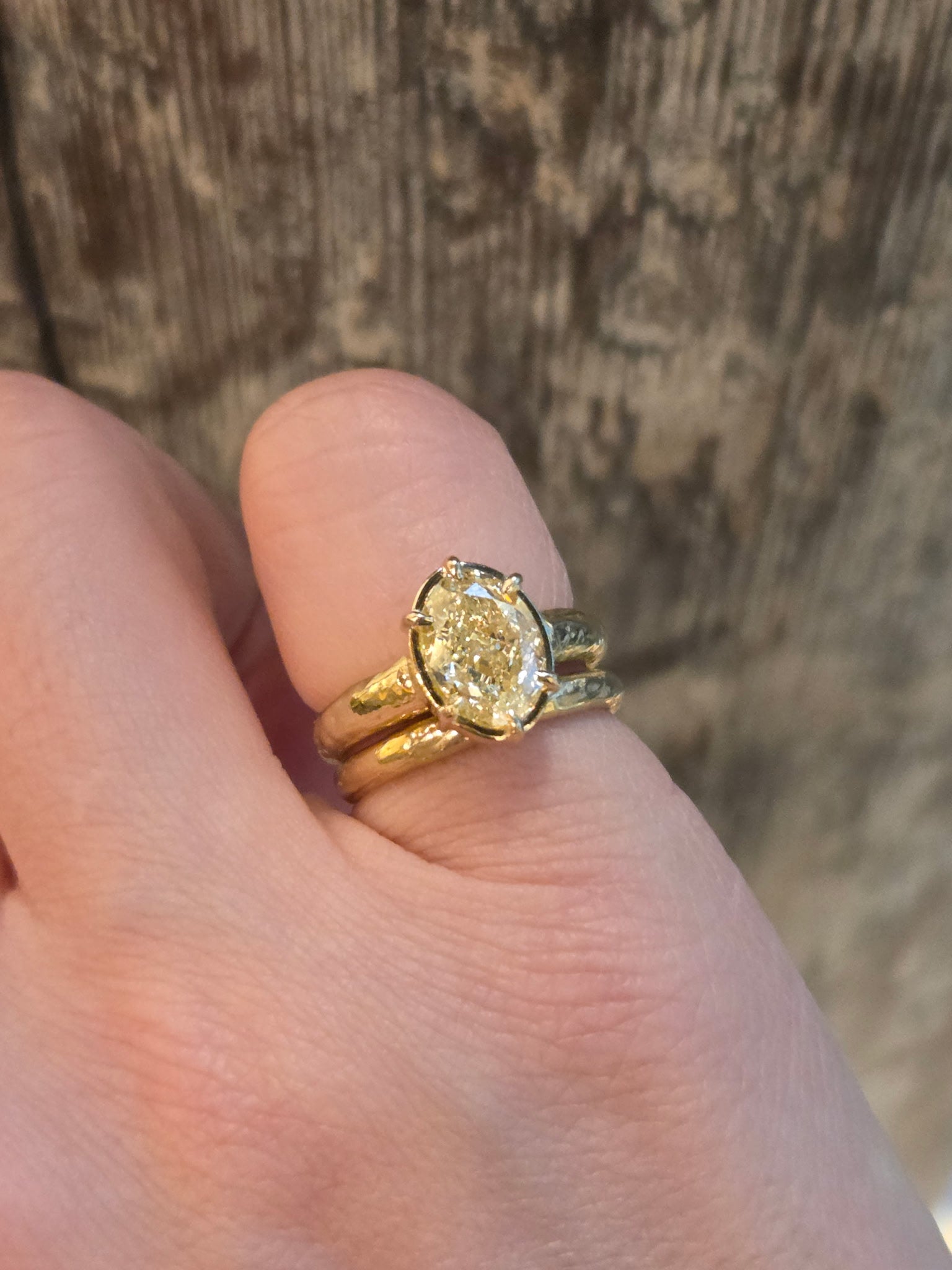 April HigashiCustom Six Prong Ring with Client's Yellow Diamond in 18k Yellow Gold and Ancient Texture4.25