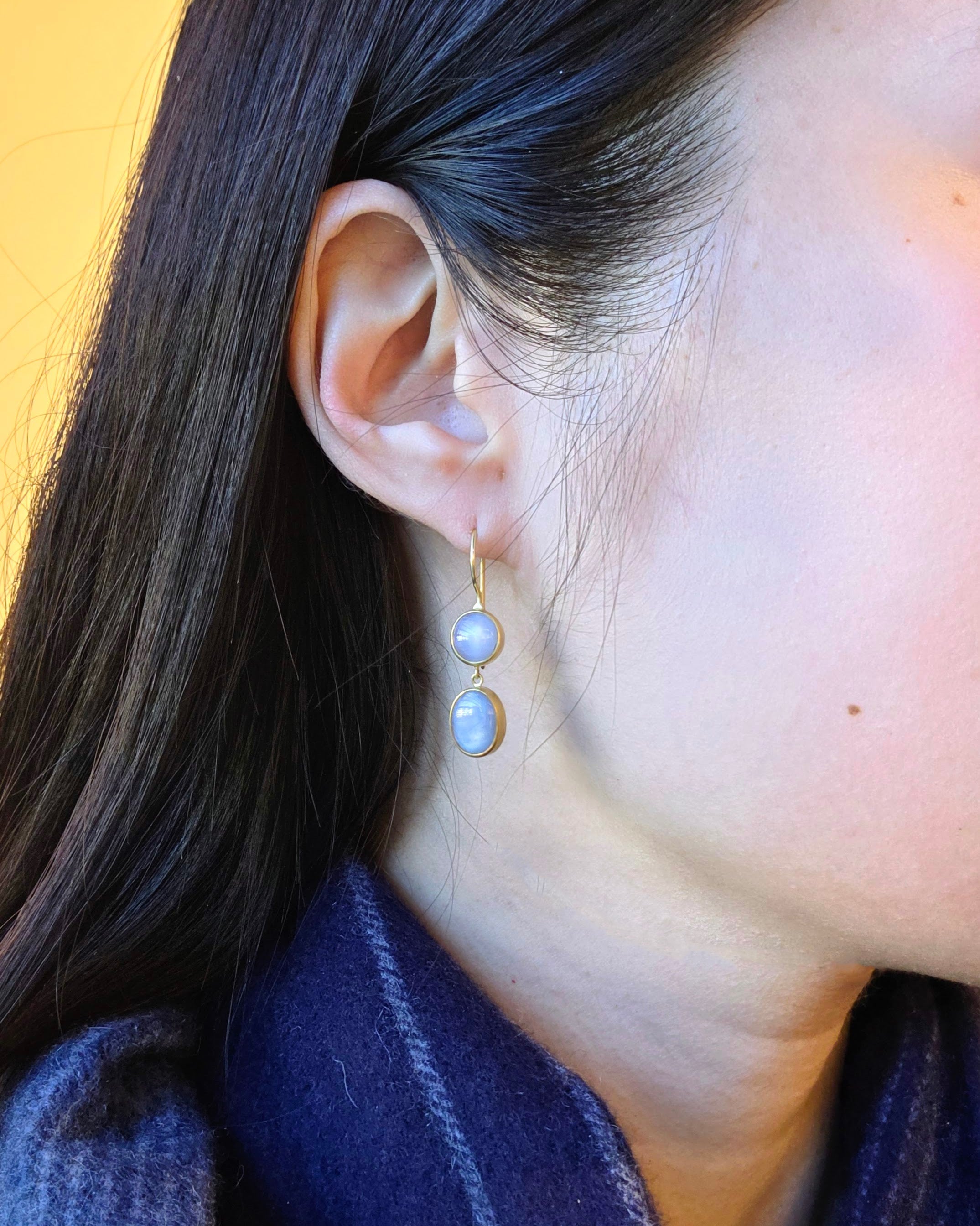 Double Star Sapphire Dangle Earrings in 18k Gold star sapphires, 18k gold