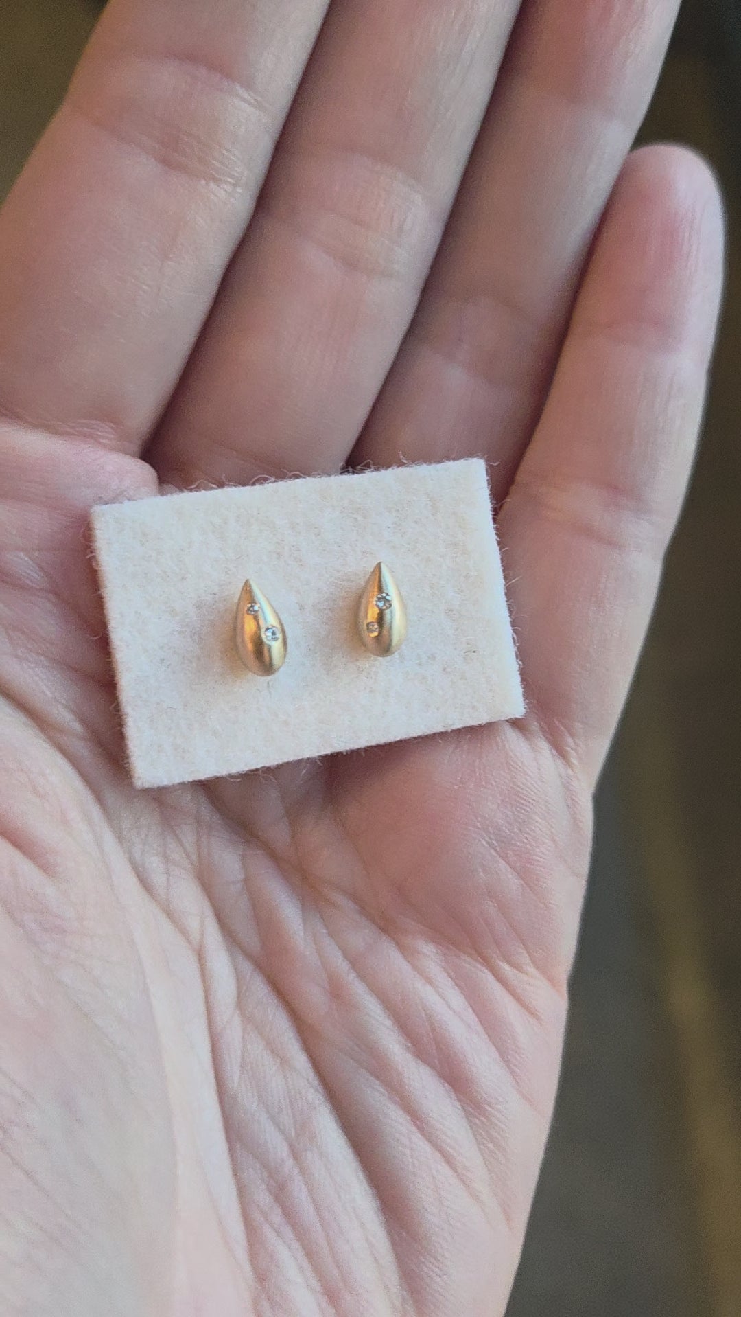 Drop Post Earrings with Diamonds in 14k Gold14k yellow gold, reclaimed diamond melee