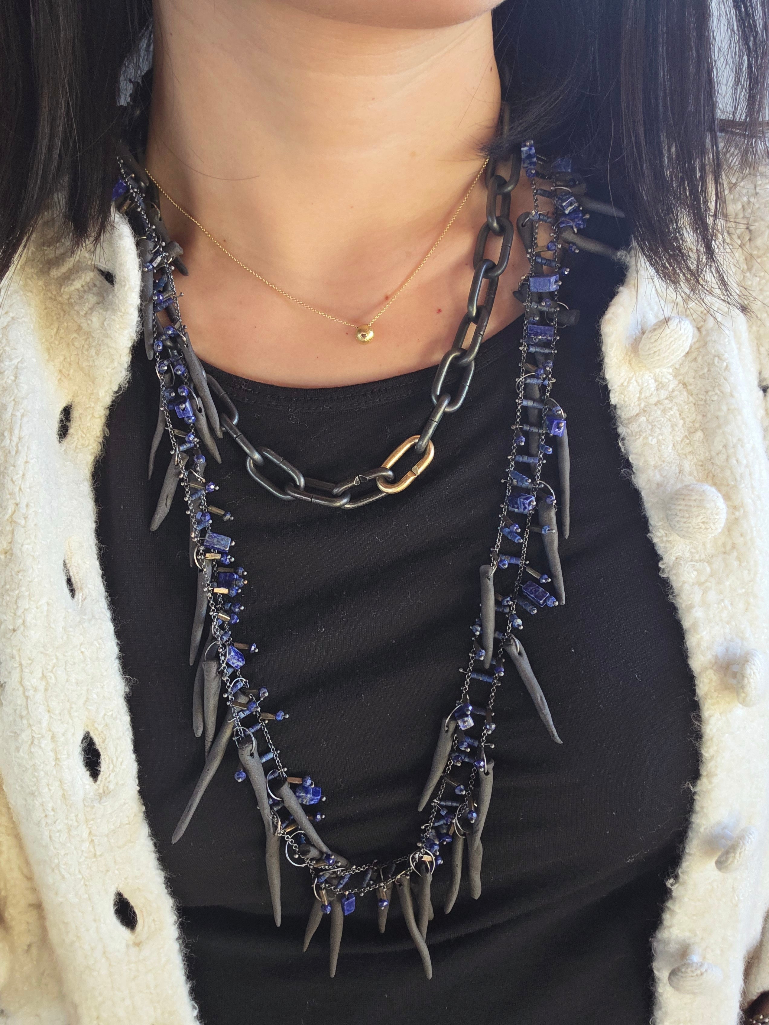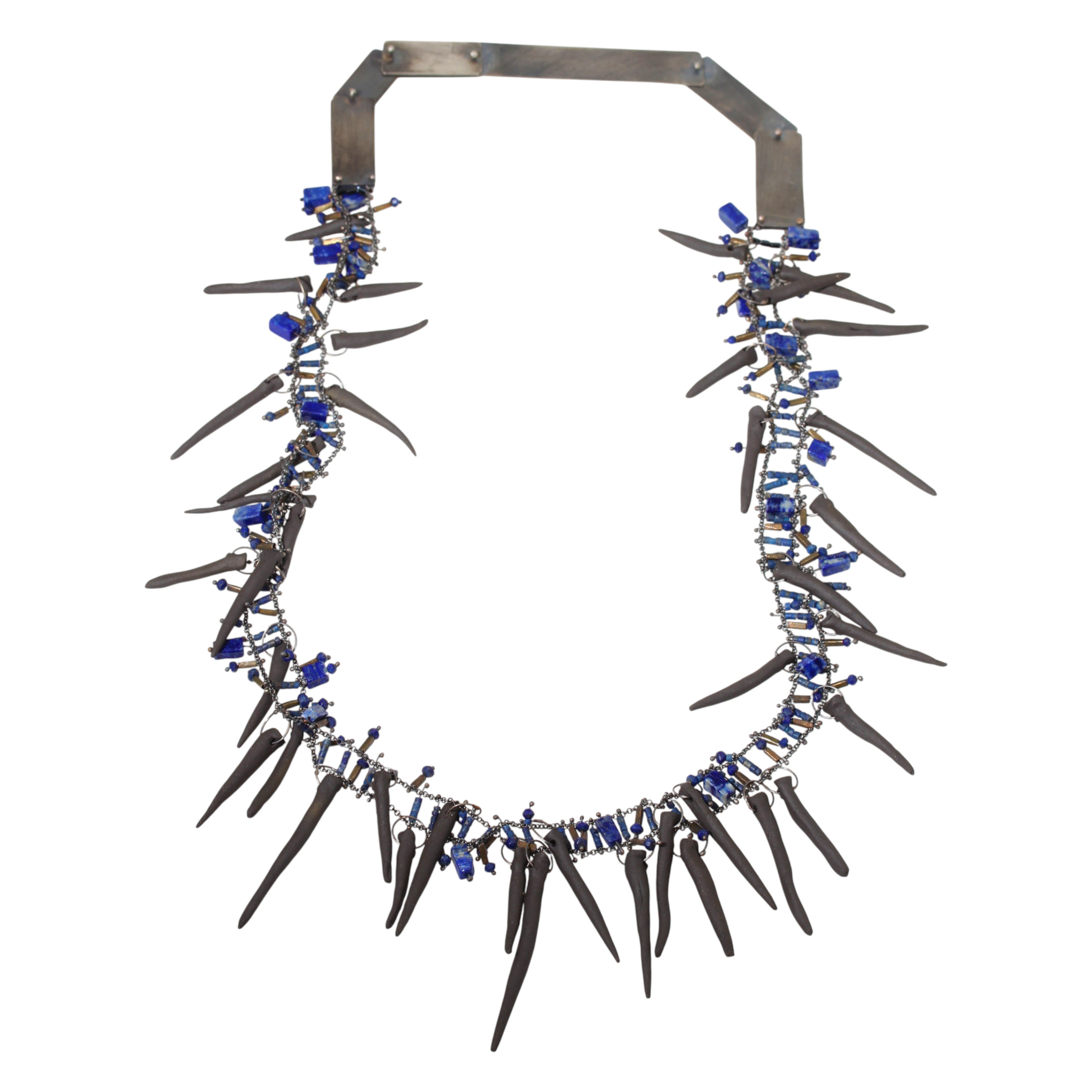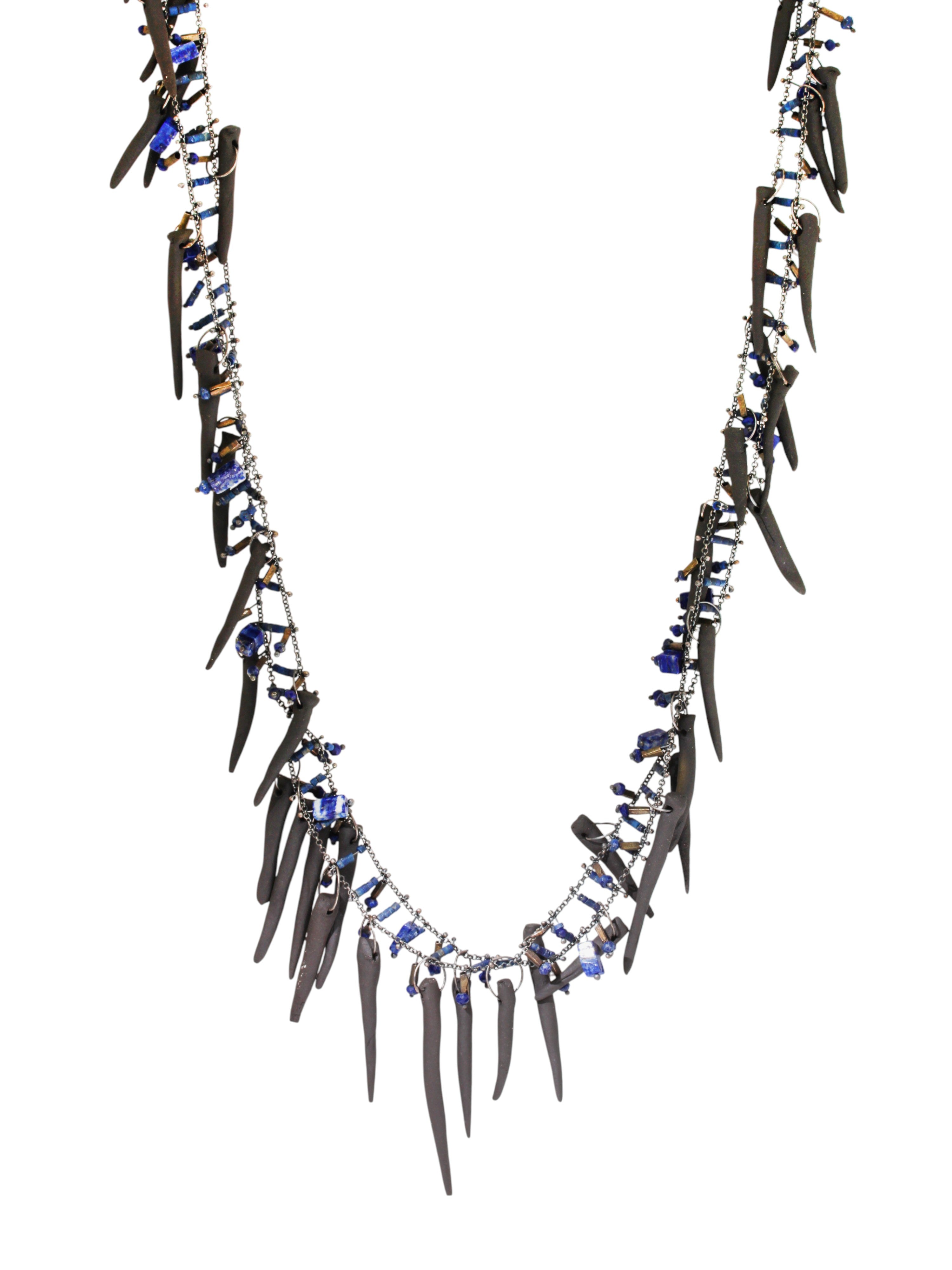 Experimental Ceramic Necklace with Lapis in Oxidized Silverceramic, lapis, oxidized silver