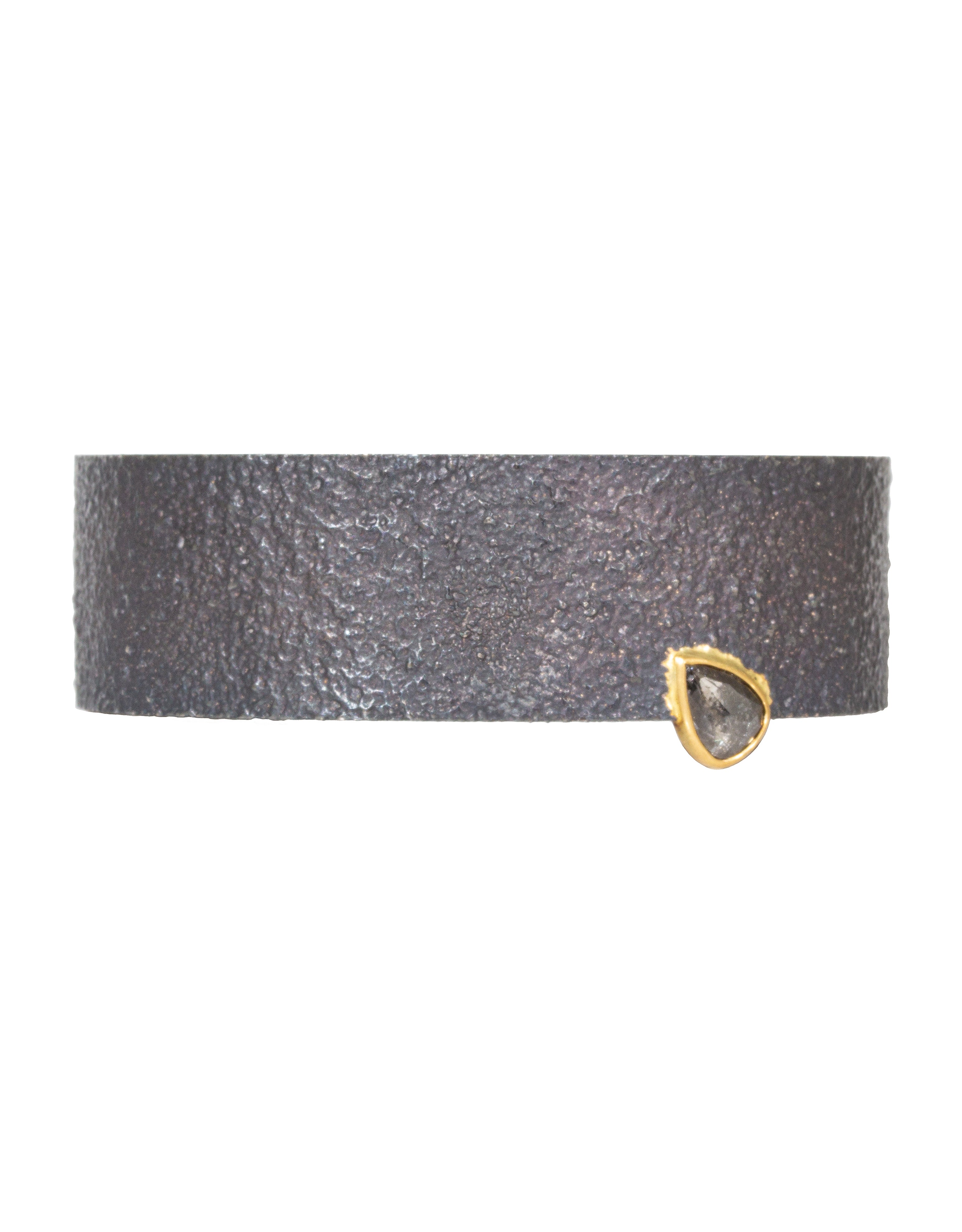 Extra Wide Cuff Bracelet in Sand-Textured Oxidized Silver with Salt & Pepper Diamond