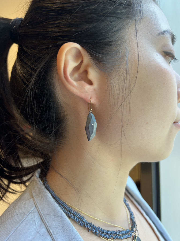 Flat Faceted Earrings in Oxidized Silver - Plain or with White Sapphires