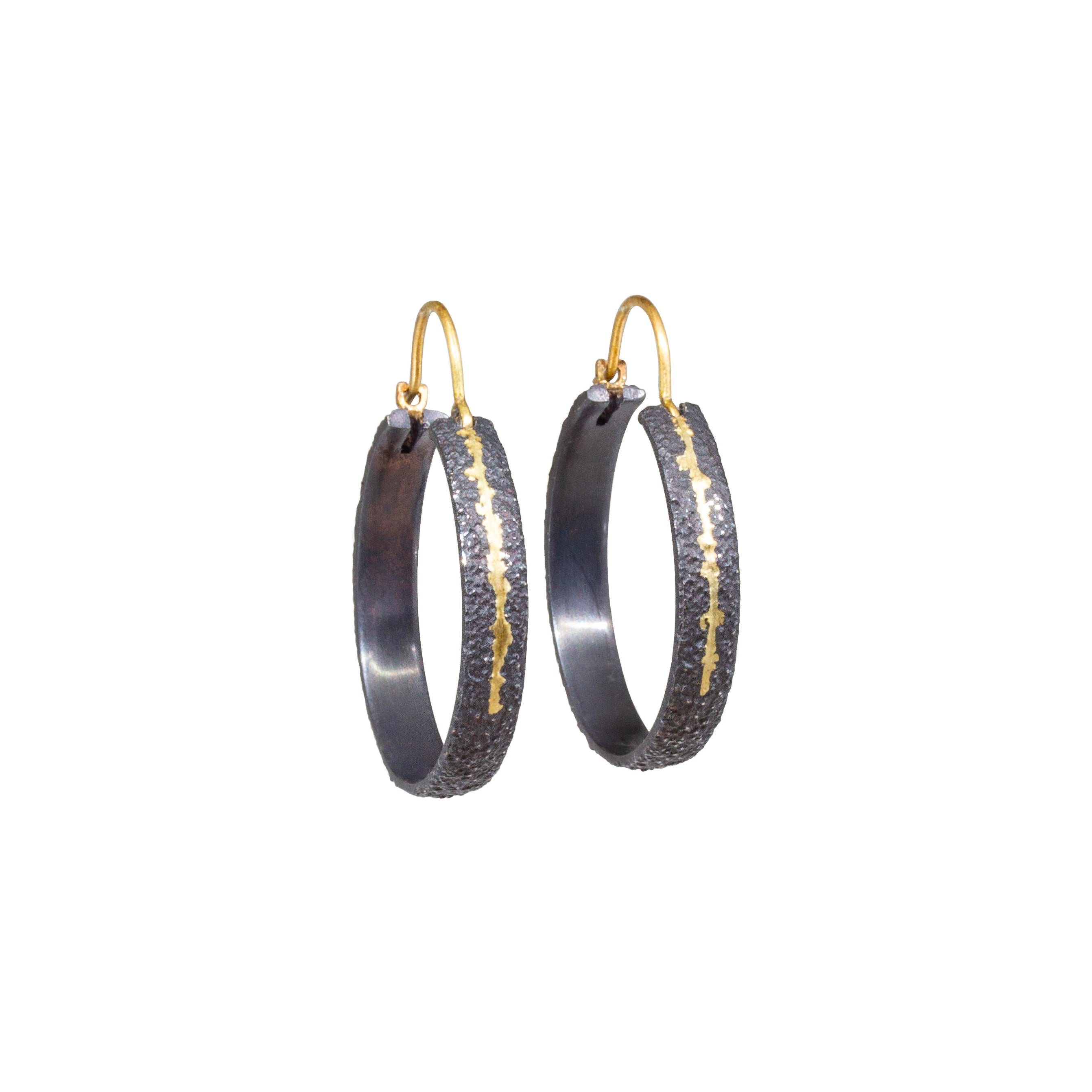 Fog Hoop Earrings in Sand-Textured Oxidized Silver