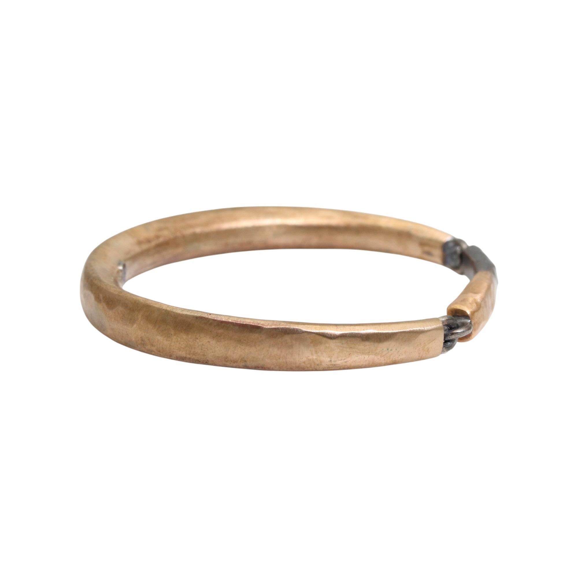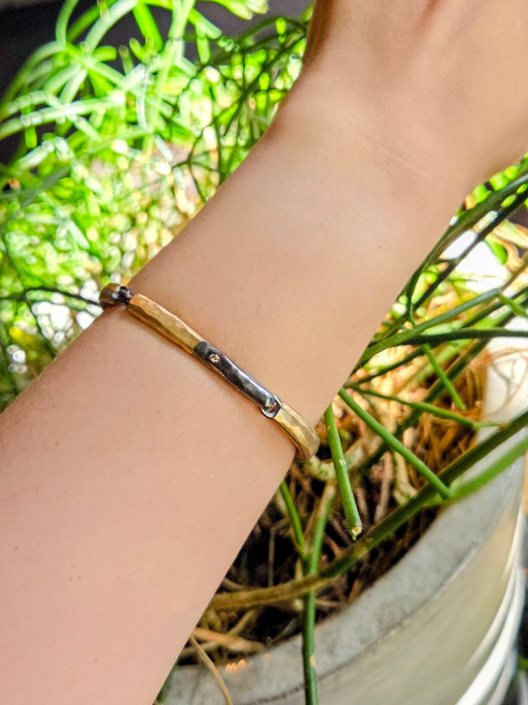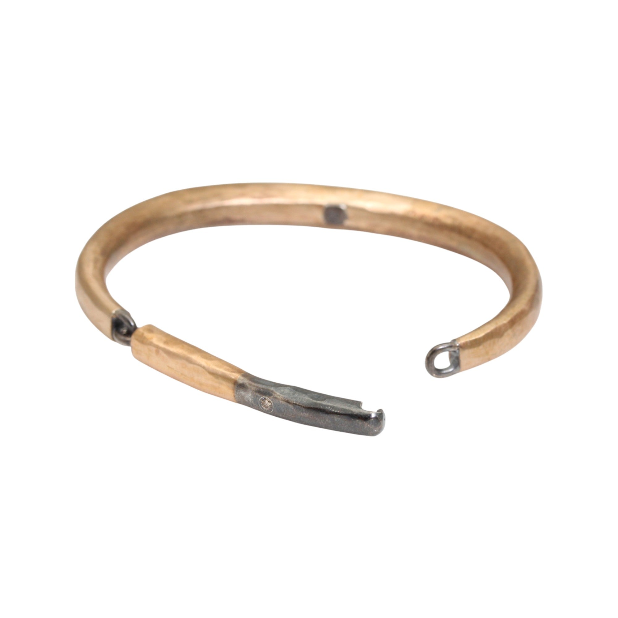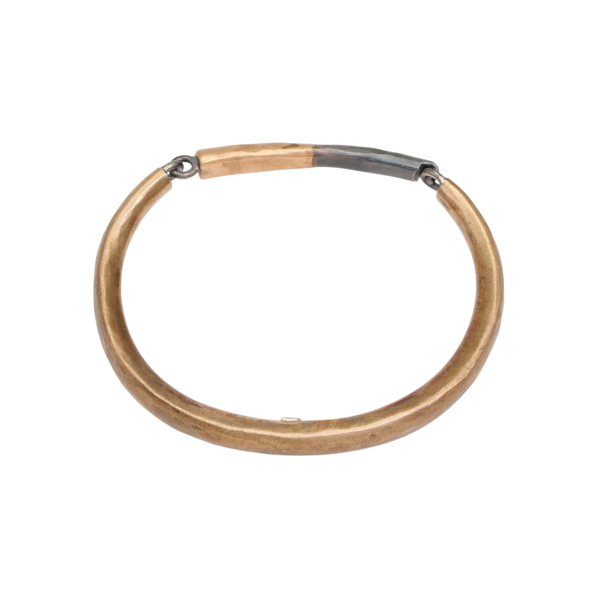 Forged Cuff Bracelet with Cognac Diamond in Ancient Bronze and Oxidized Silverancient bronze, silver, 1.8 mm cognac diamond
