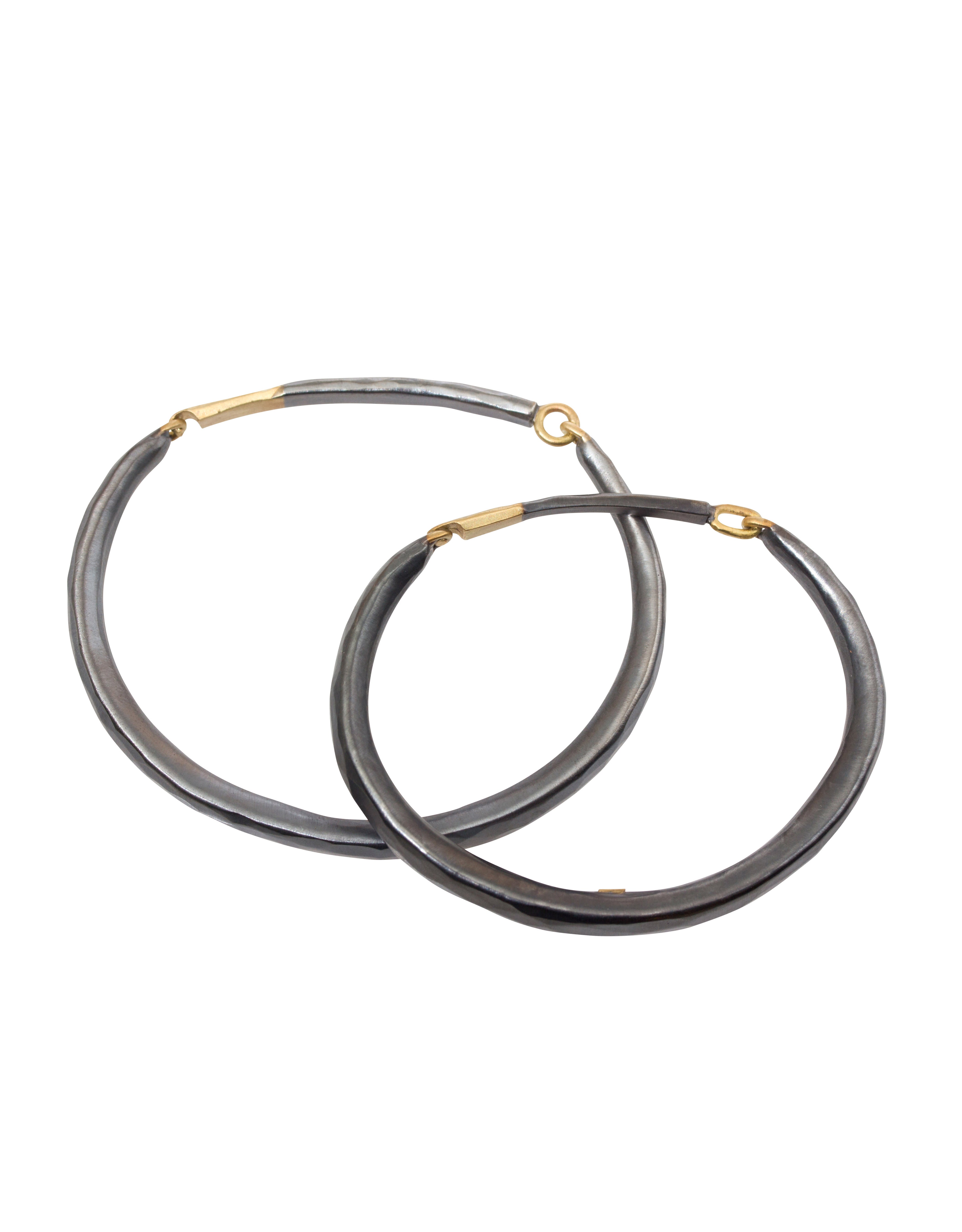 oxidized silver, 1.8 mm cognac diamond, 18k yellow gold