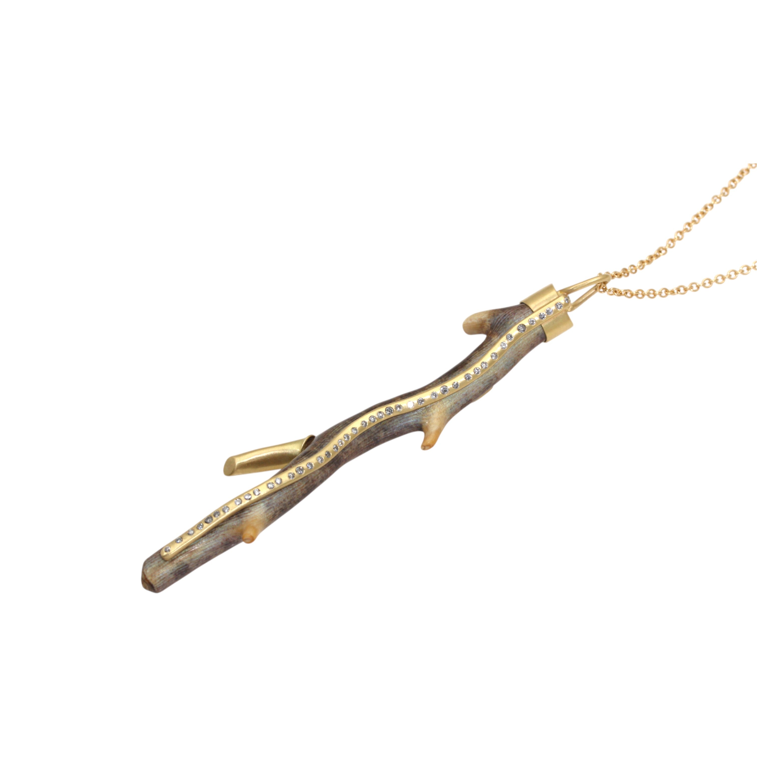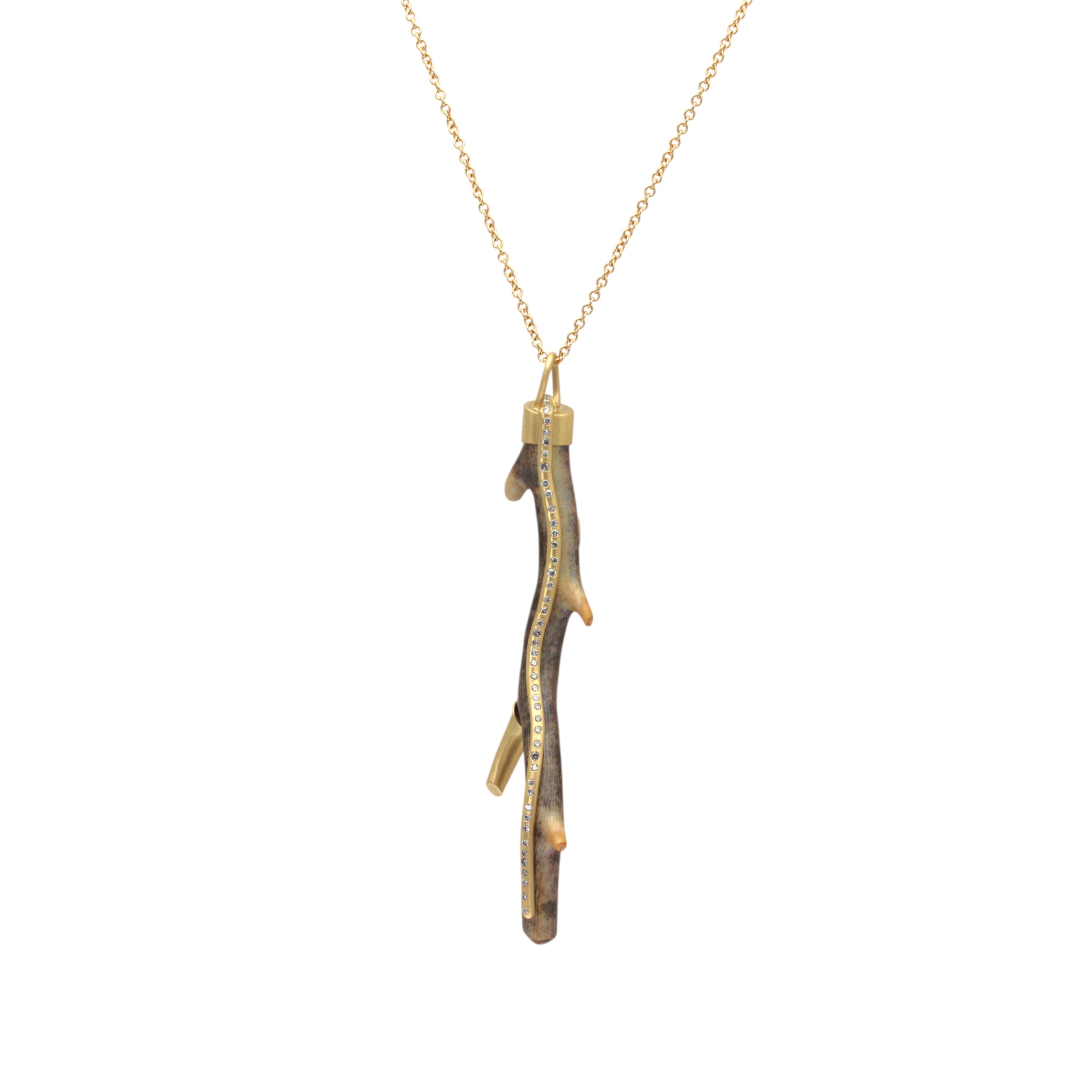 Fossilized Coral Branch Pendant with 47 Grey Diamonds in 18k Gold coral, 18k yellow gold, 47 grey diamonds