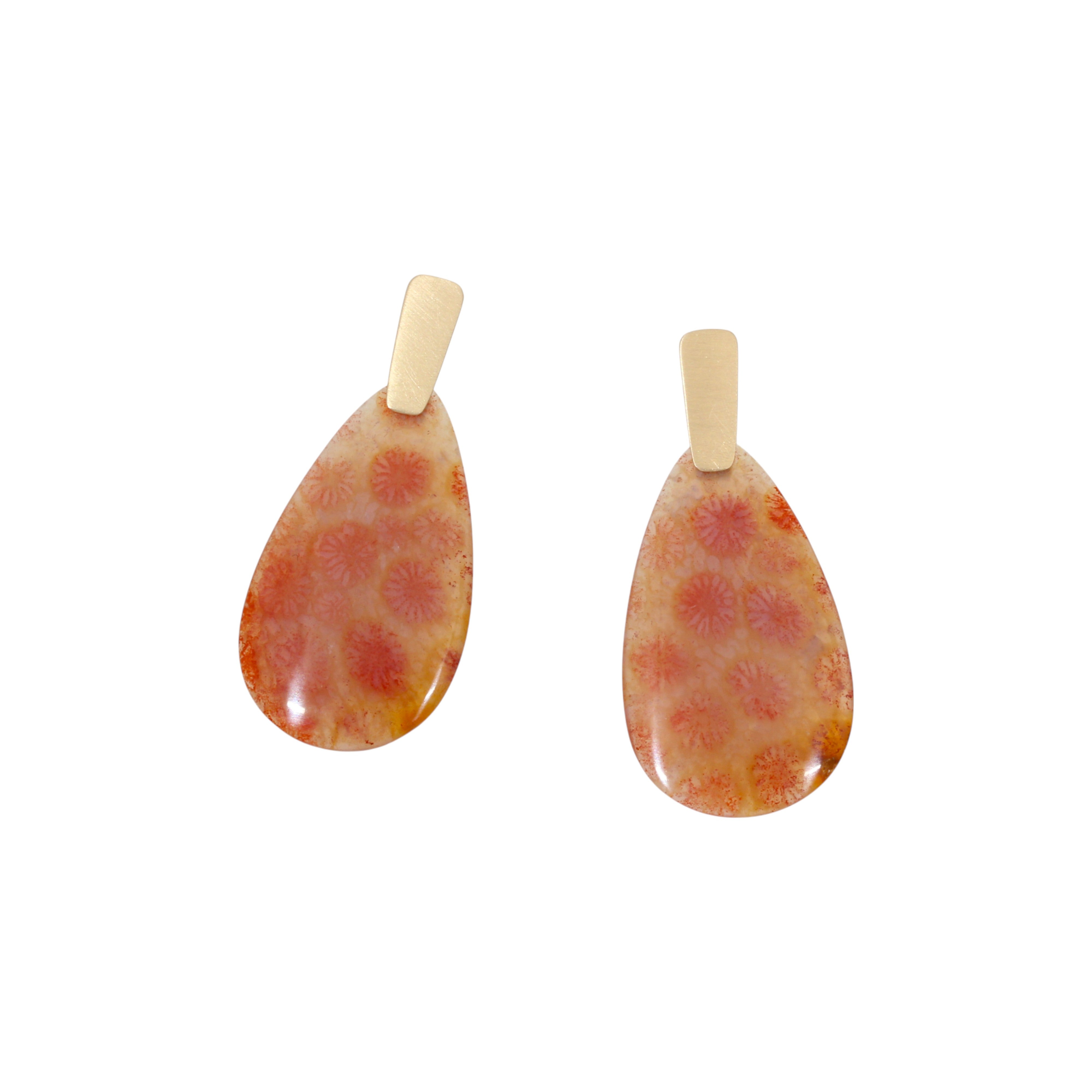 Fossilized Coral Post Dangle Earrings with 14k Gold Top fossilized coral, 14k yellow gold