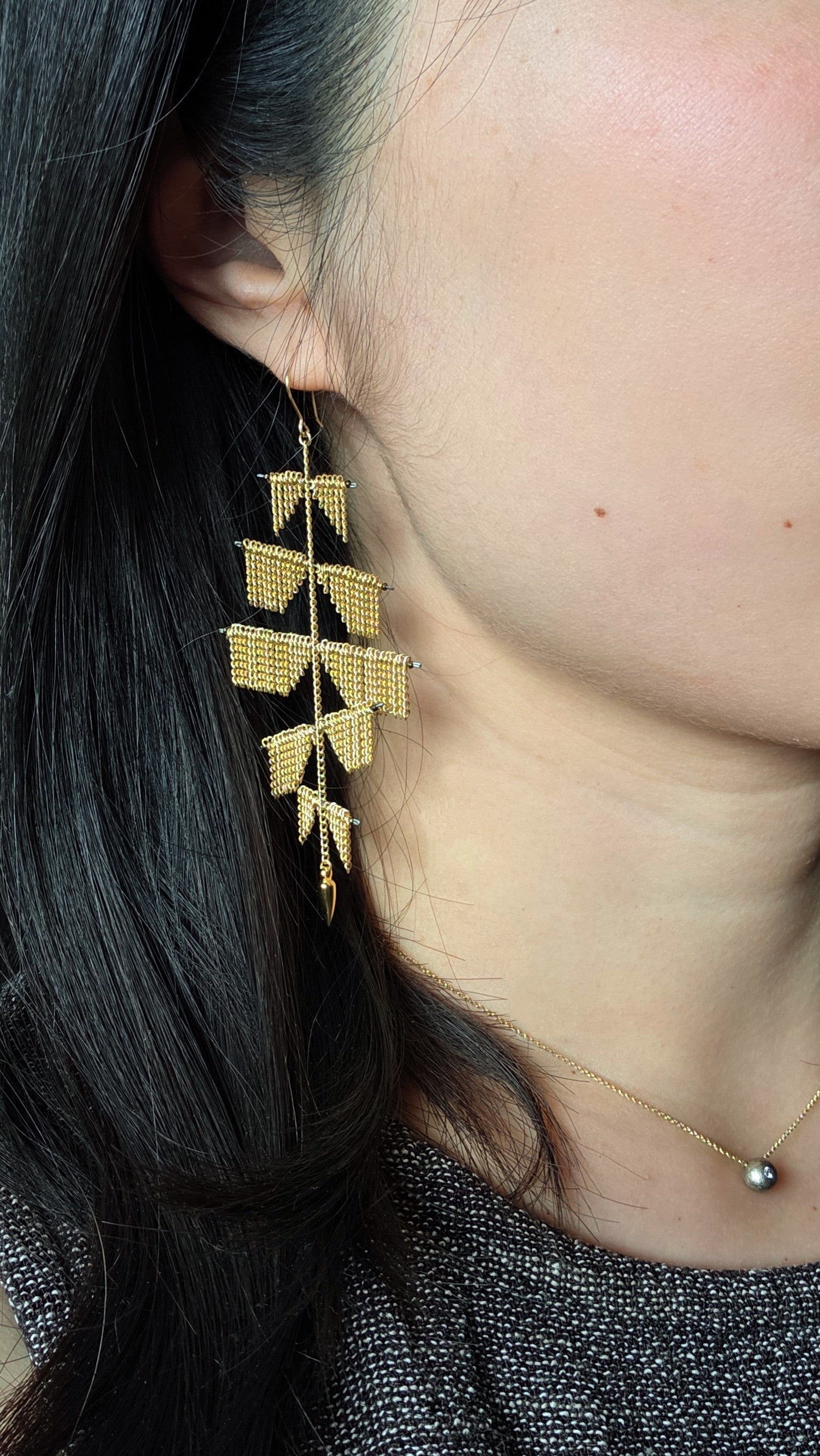 Galleon Earrings in Gold-Fill - Largegold-filled chain, hand-shaped 14k ear wires