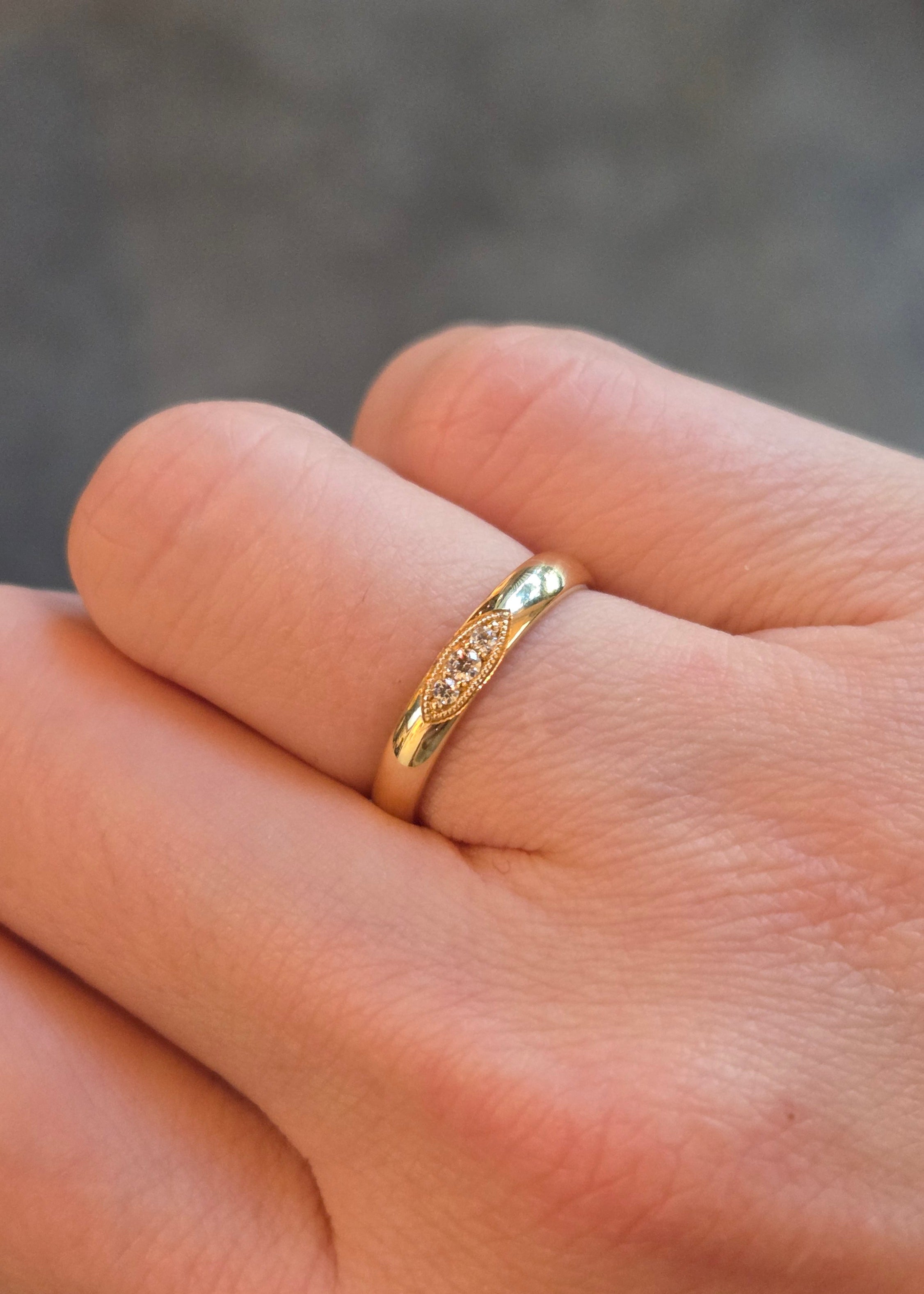 Gold and Diamond Milgrain Stacking Ring18k yellow gold, Canadian mined diamonds (F color, VS1 clarity)