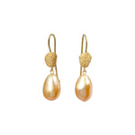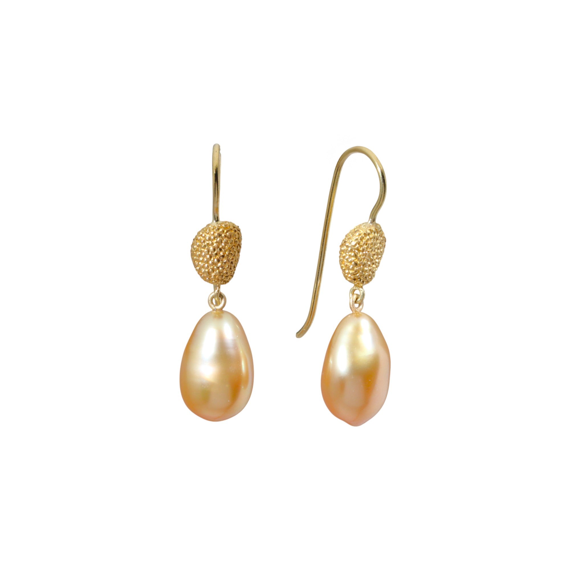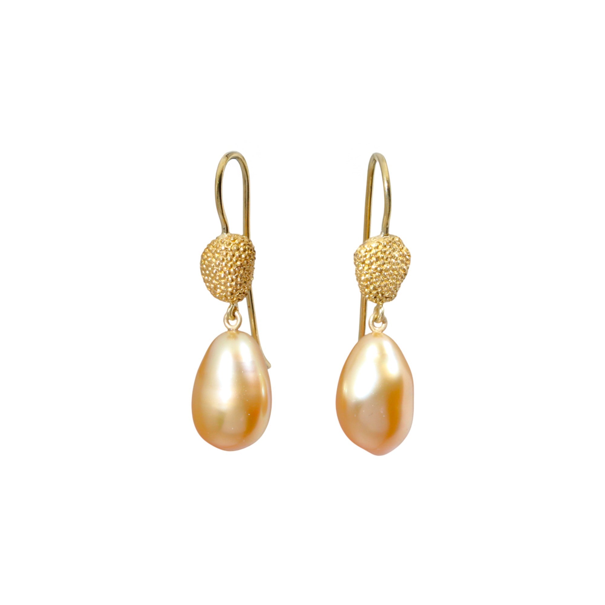 Golden Pearl and Granulated Gold Drop Earrings in 18k Yellow Goldgolden pearl, 18k yellow gold
