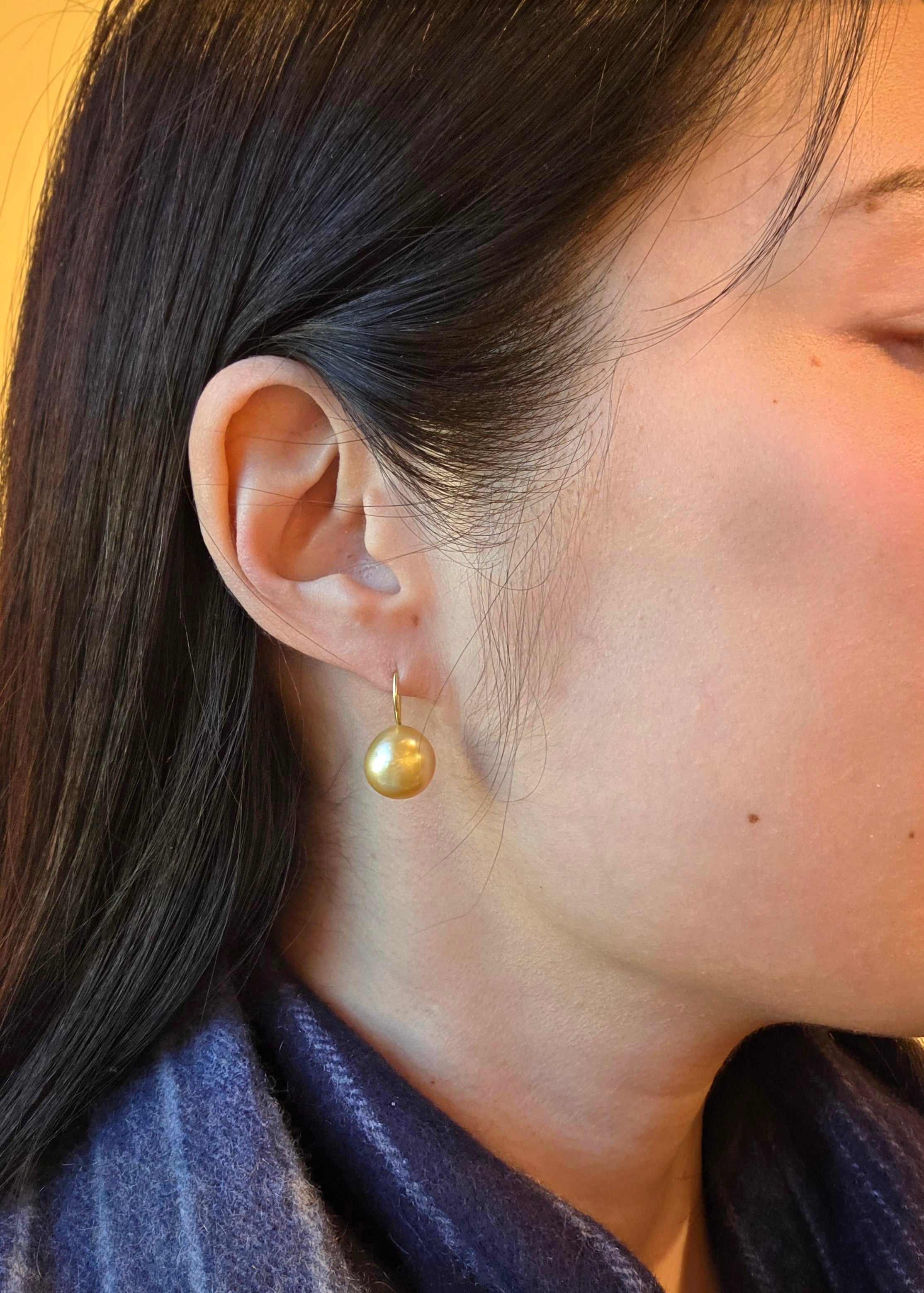 Golden Pearl Earrings with 18k Gold Ear Wiressouth sea pearls, 18k gold