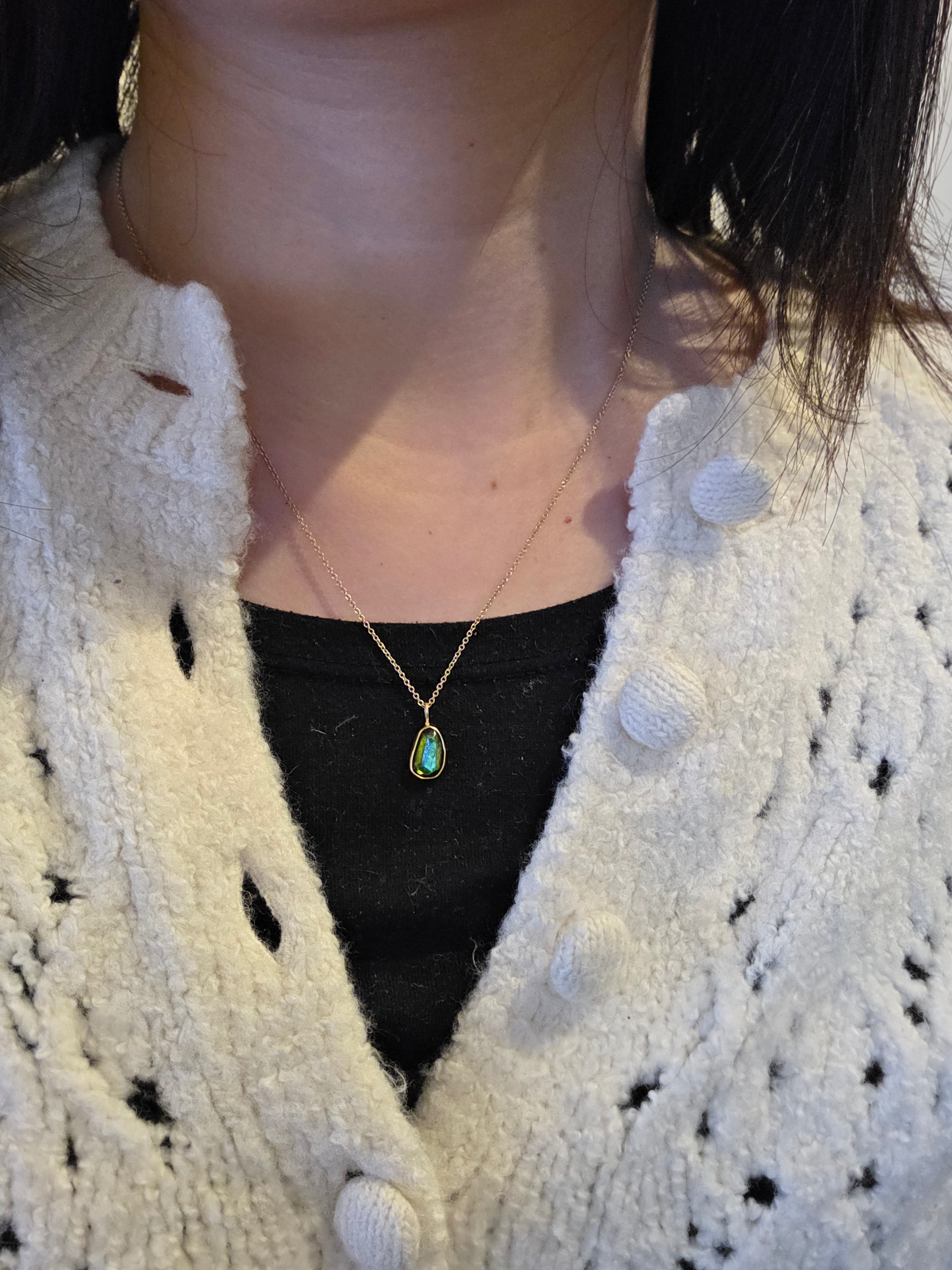Green Tourmaline Rosecut Pendant in 22k and 14k Goldtourmaline, 22k yellow gold, 14k yellow gold18" chain with 2" extender