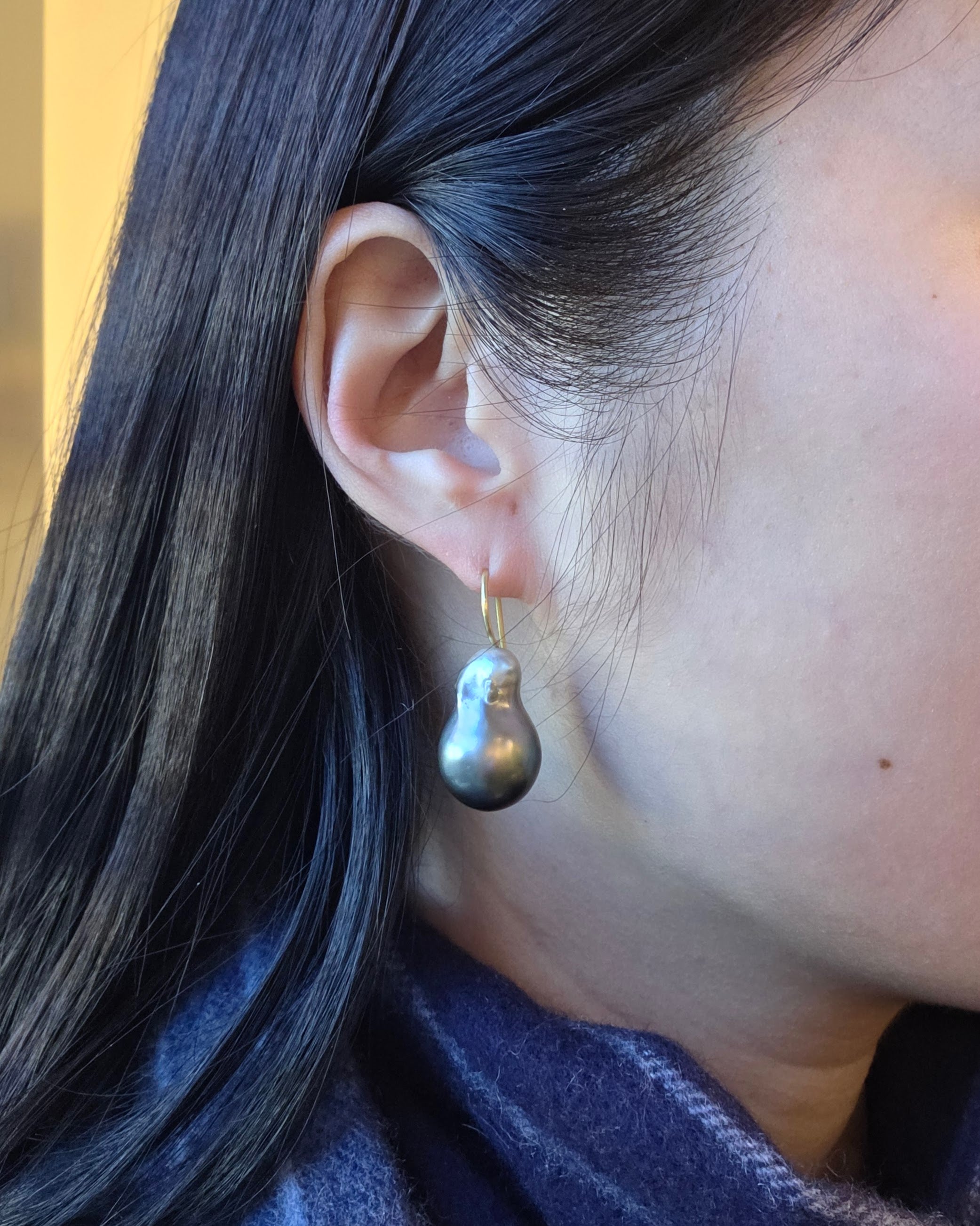 Grey Baroque Pearl Earrings in 18k Yellow GoldTahitian pearls, 18k yellow gold
