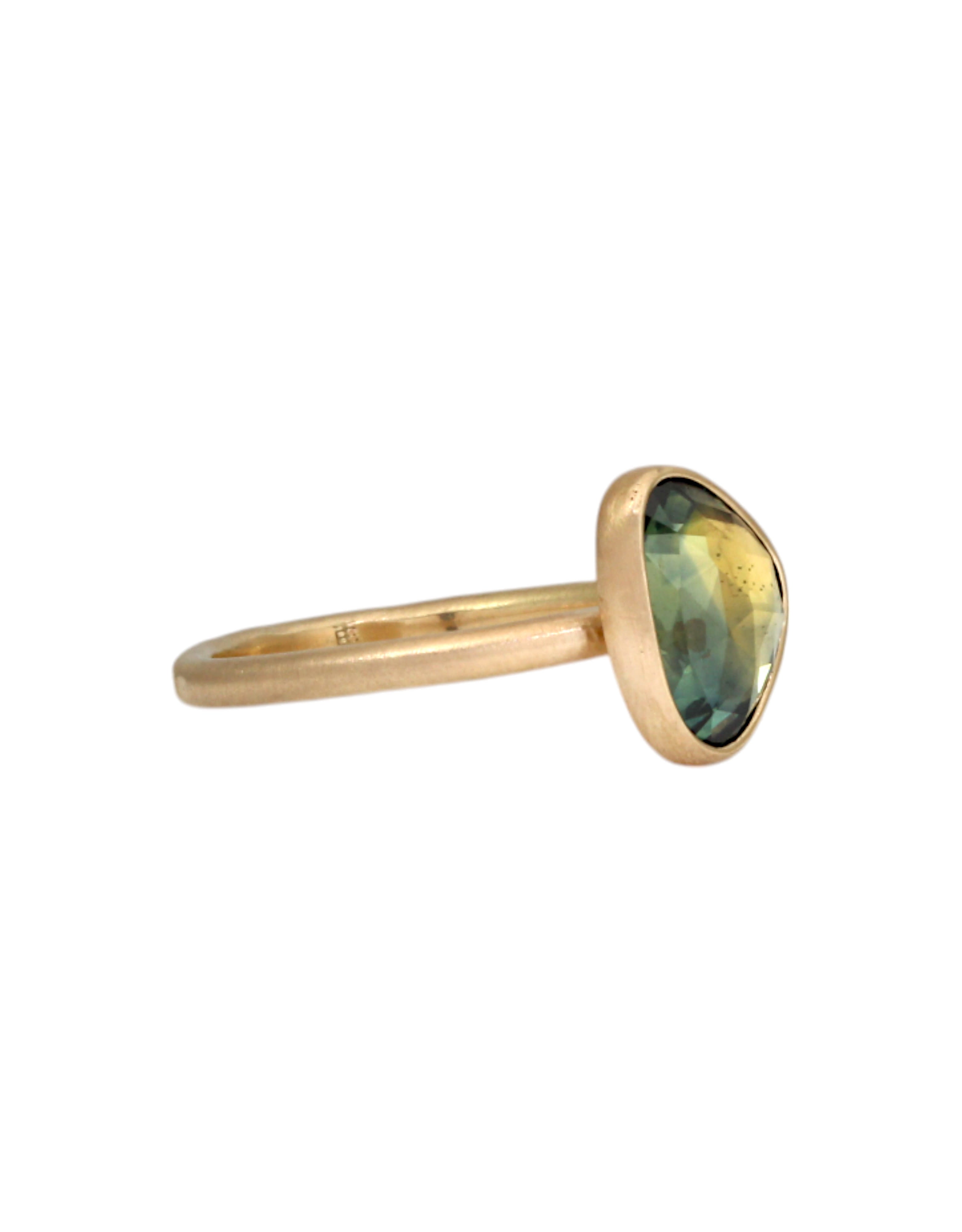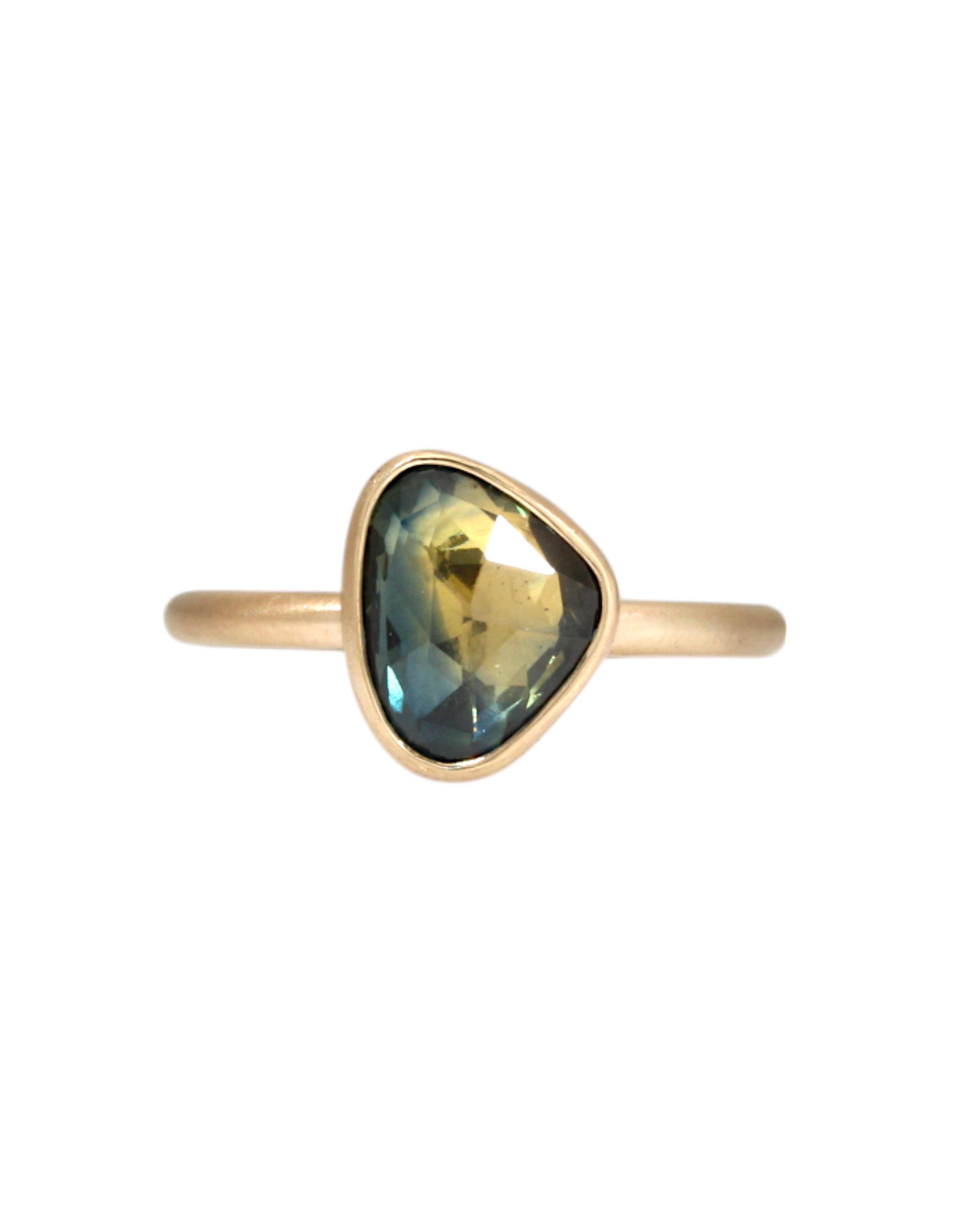 Organic Shape BiColor Sapphire Ring in 14k Gold 2.22 cts sapphire, 14k yellow gold