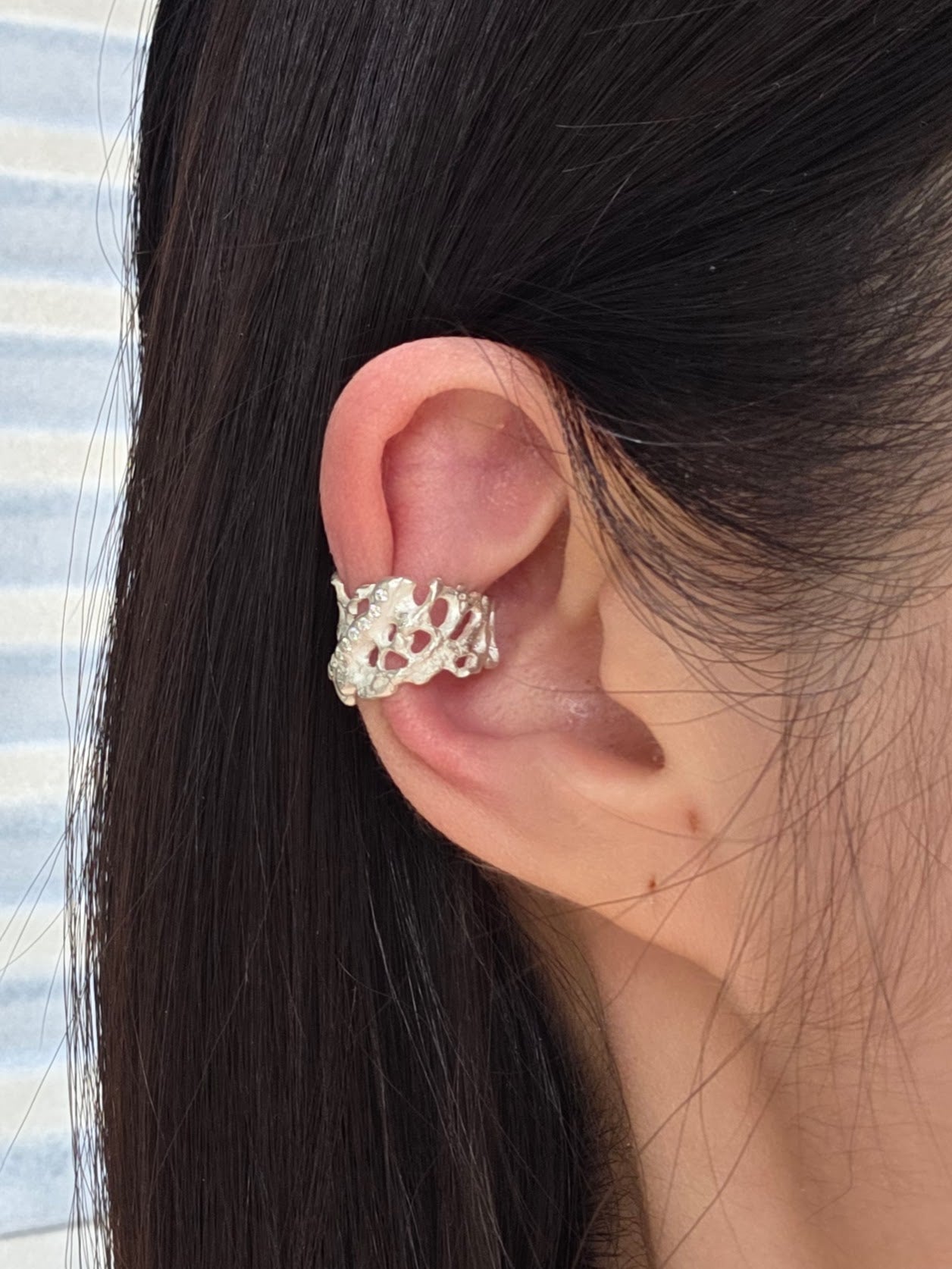 Koraru Ear Cuff with White Diamonds in SilverLab-grown white diamond, silver