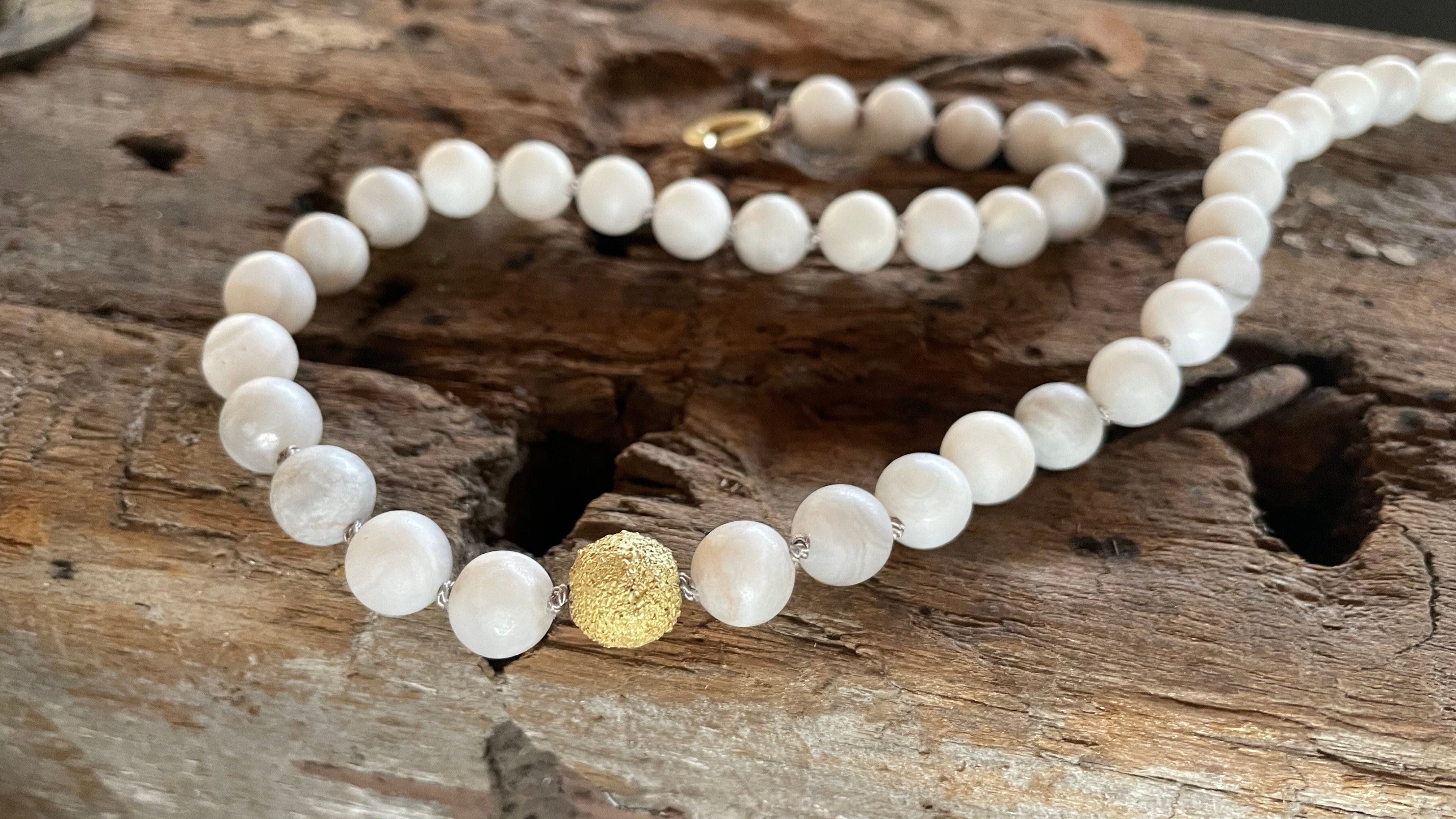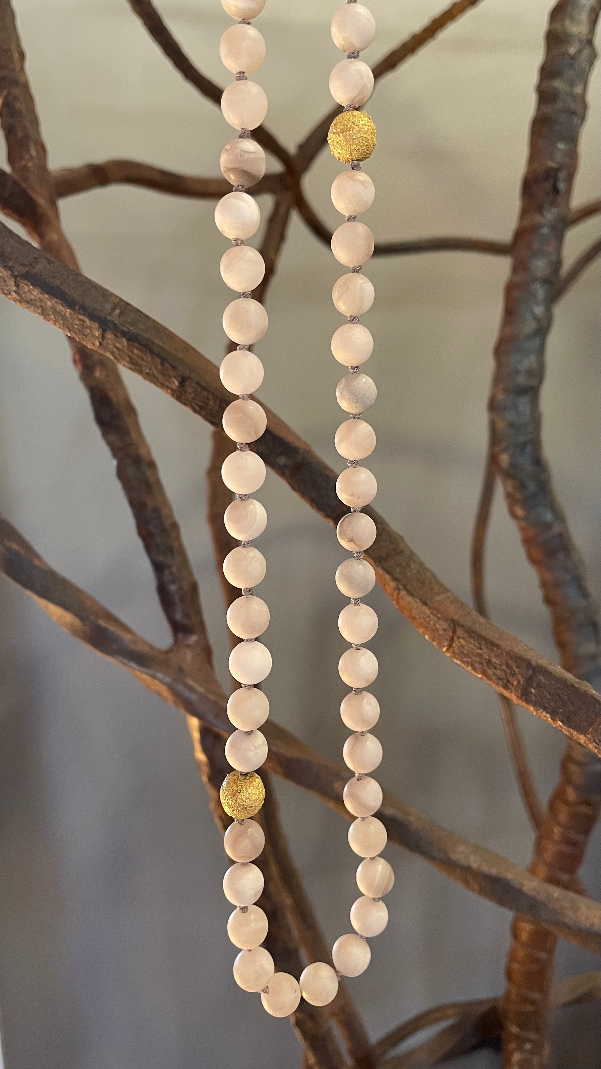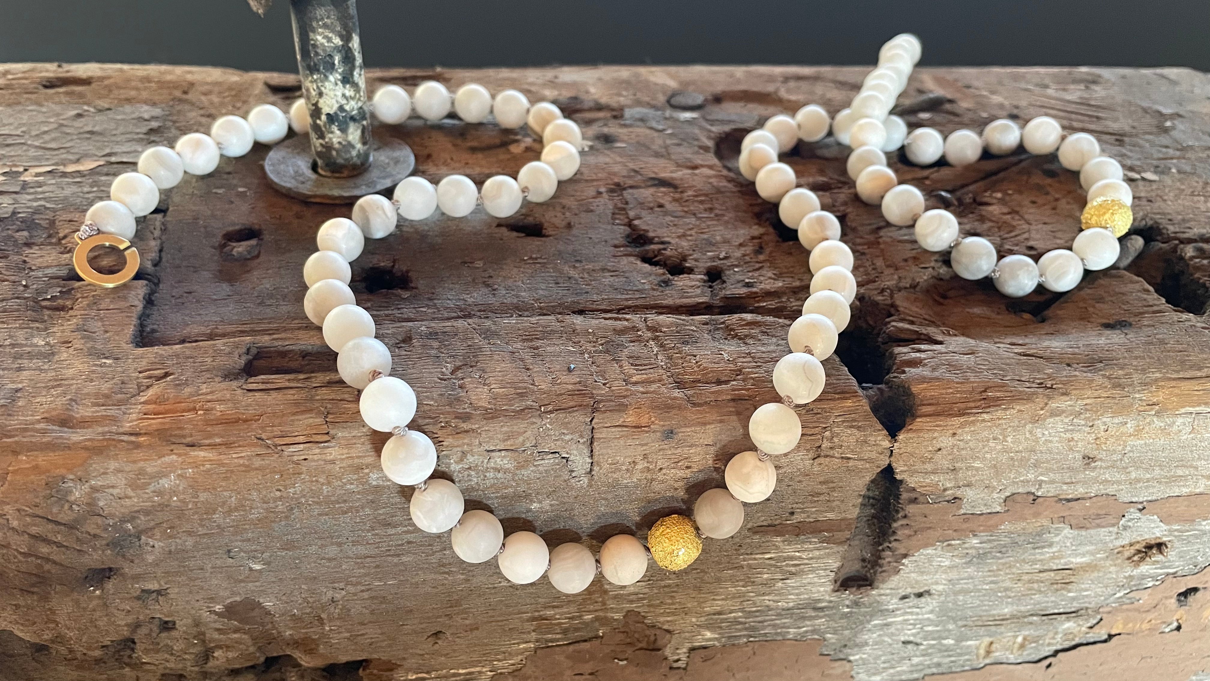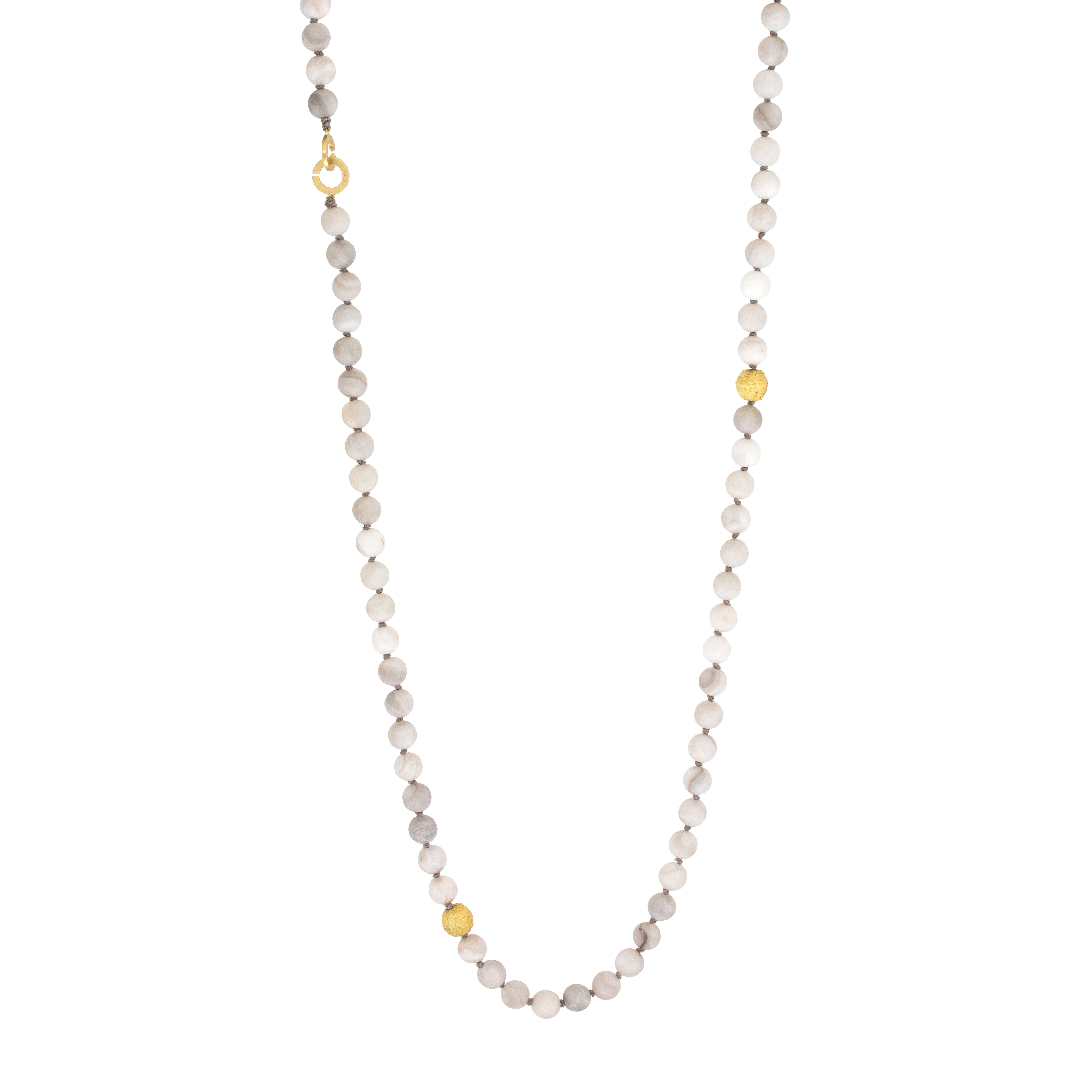 Lace Agate Necklace with Sand-Textured 18k Beads