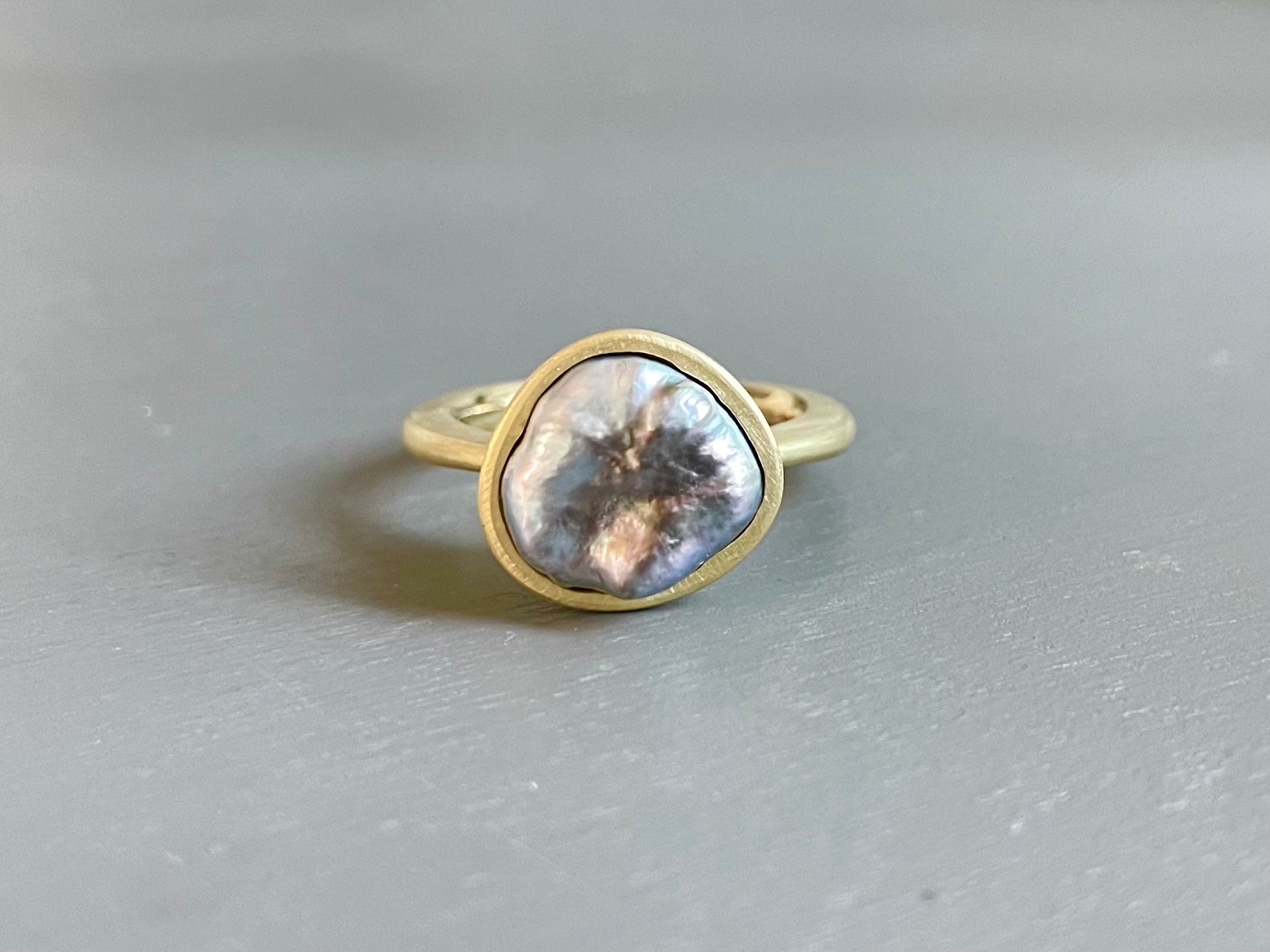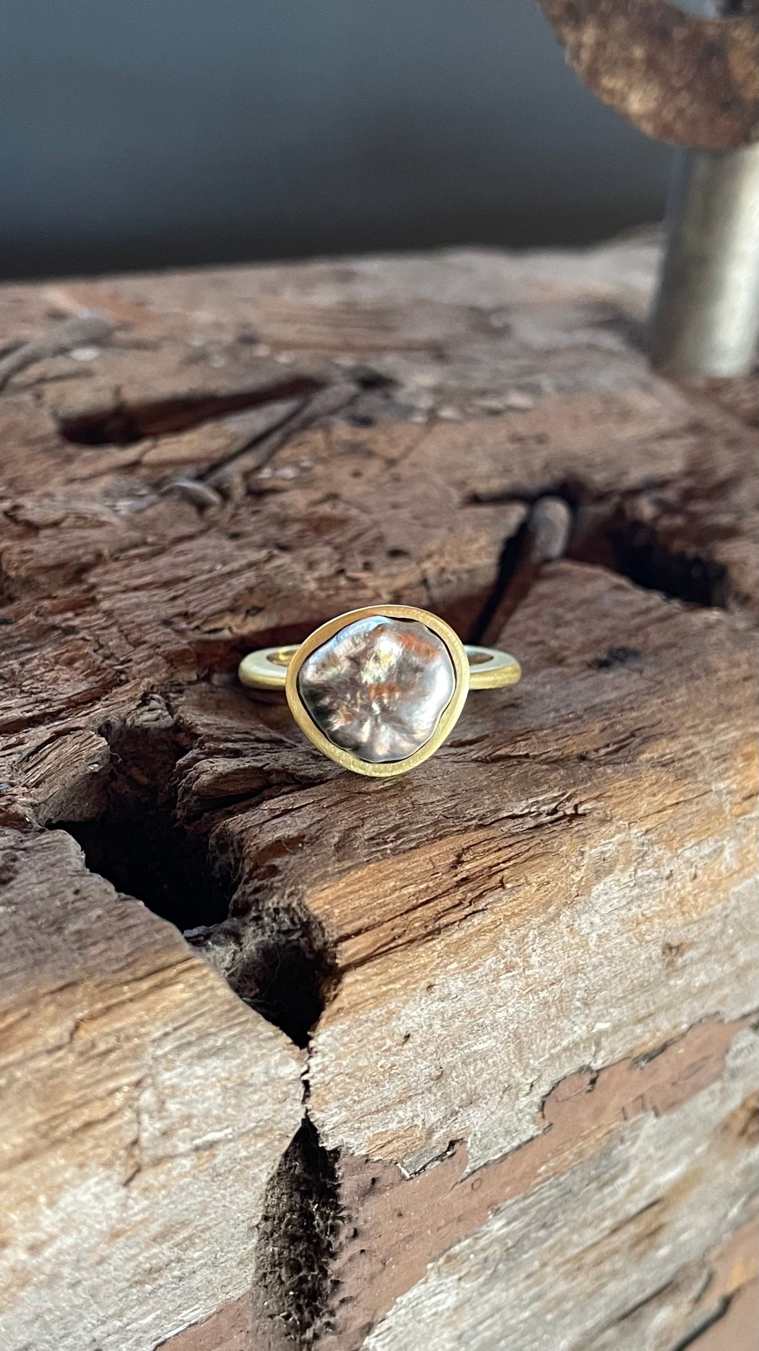 Large Keshi Pearl Ring in 18k Yellow Gold