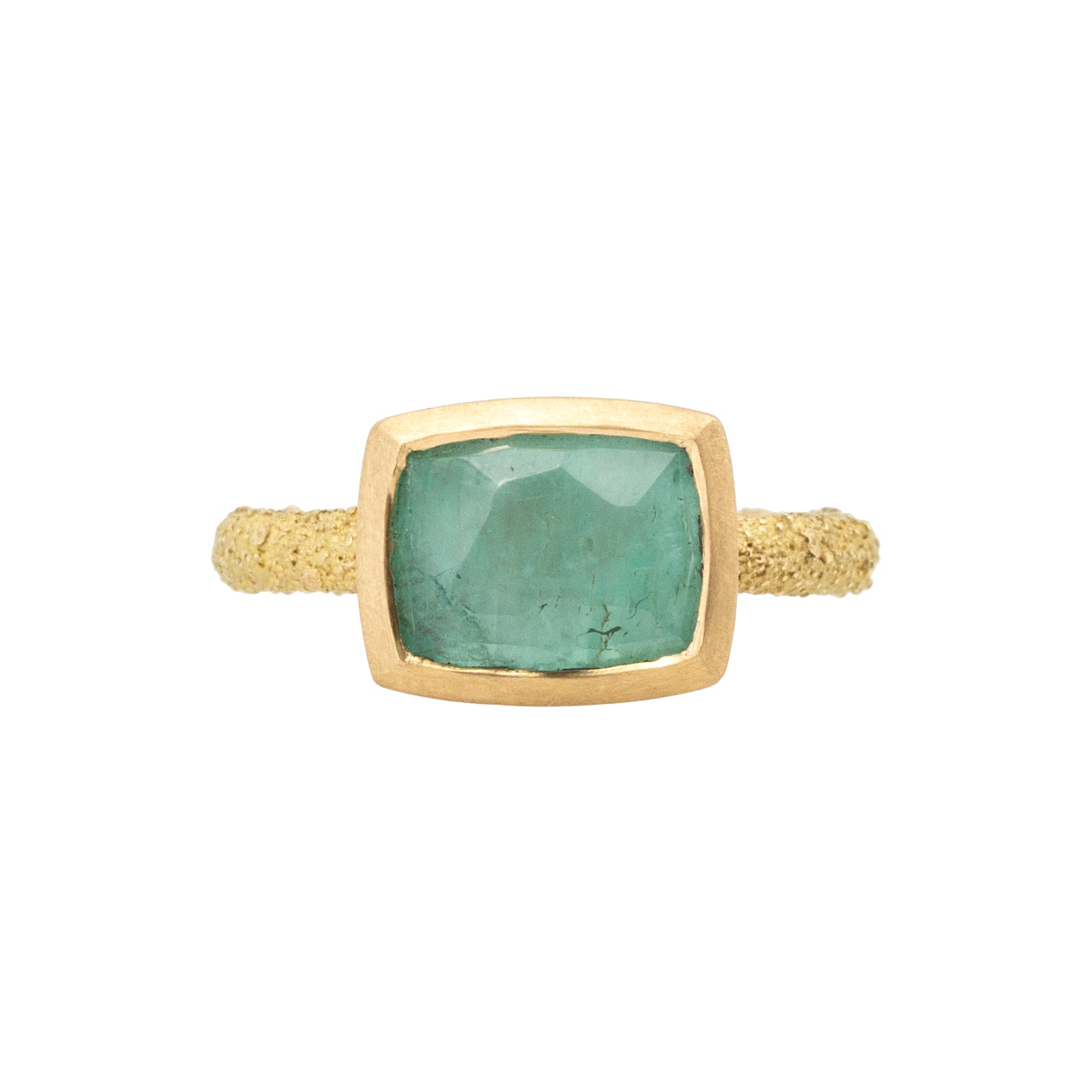 Rosecut Emerald Ring in Sand-Textured 18k Yellow Gold