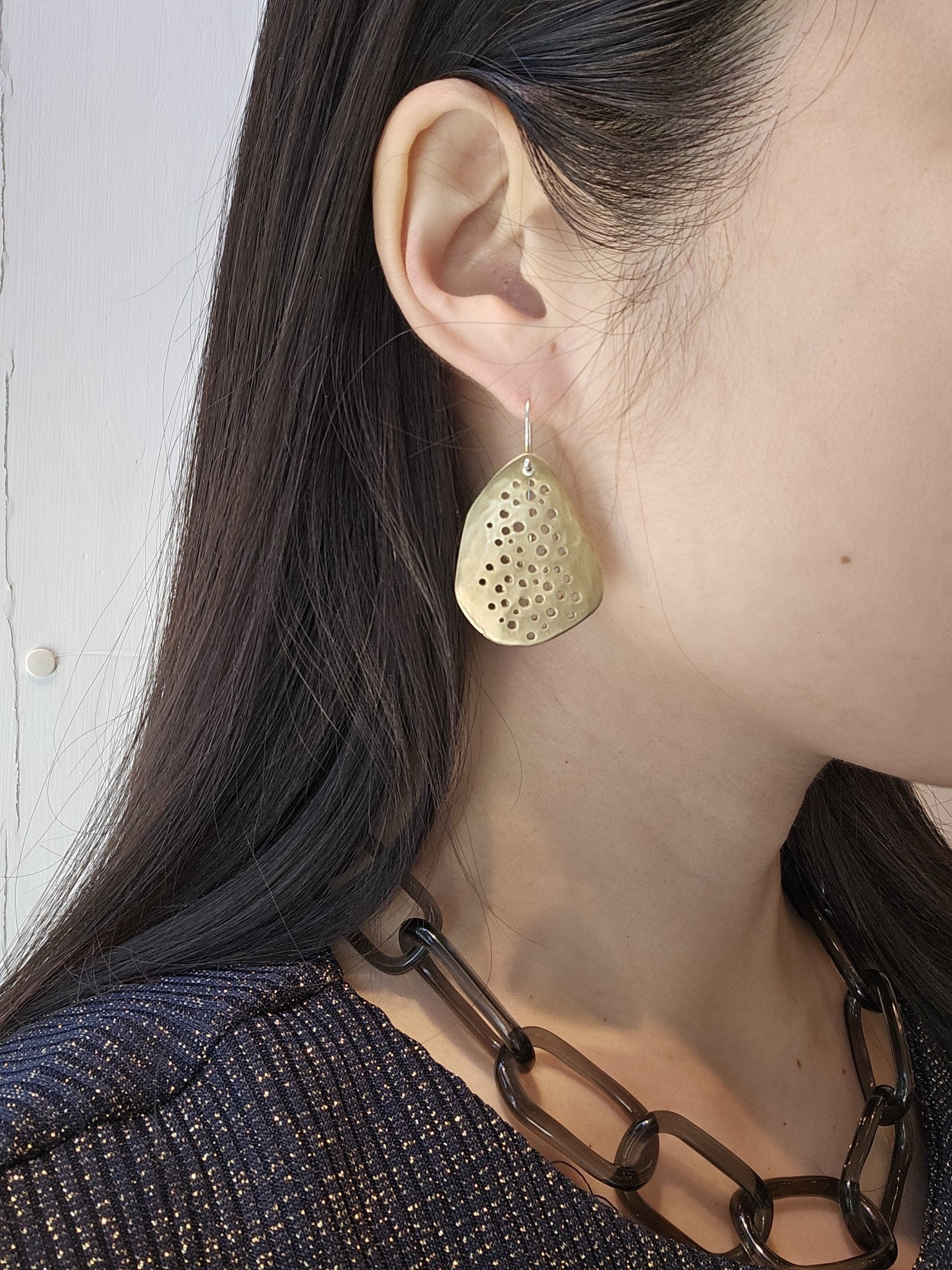 Large Multi Hole Earrings in Golden Bronze with Silver Earwires