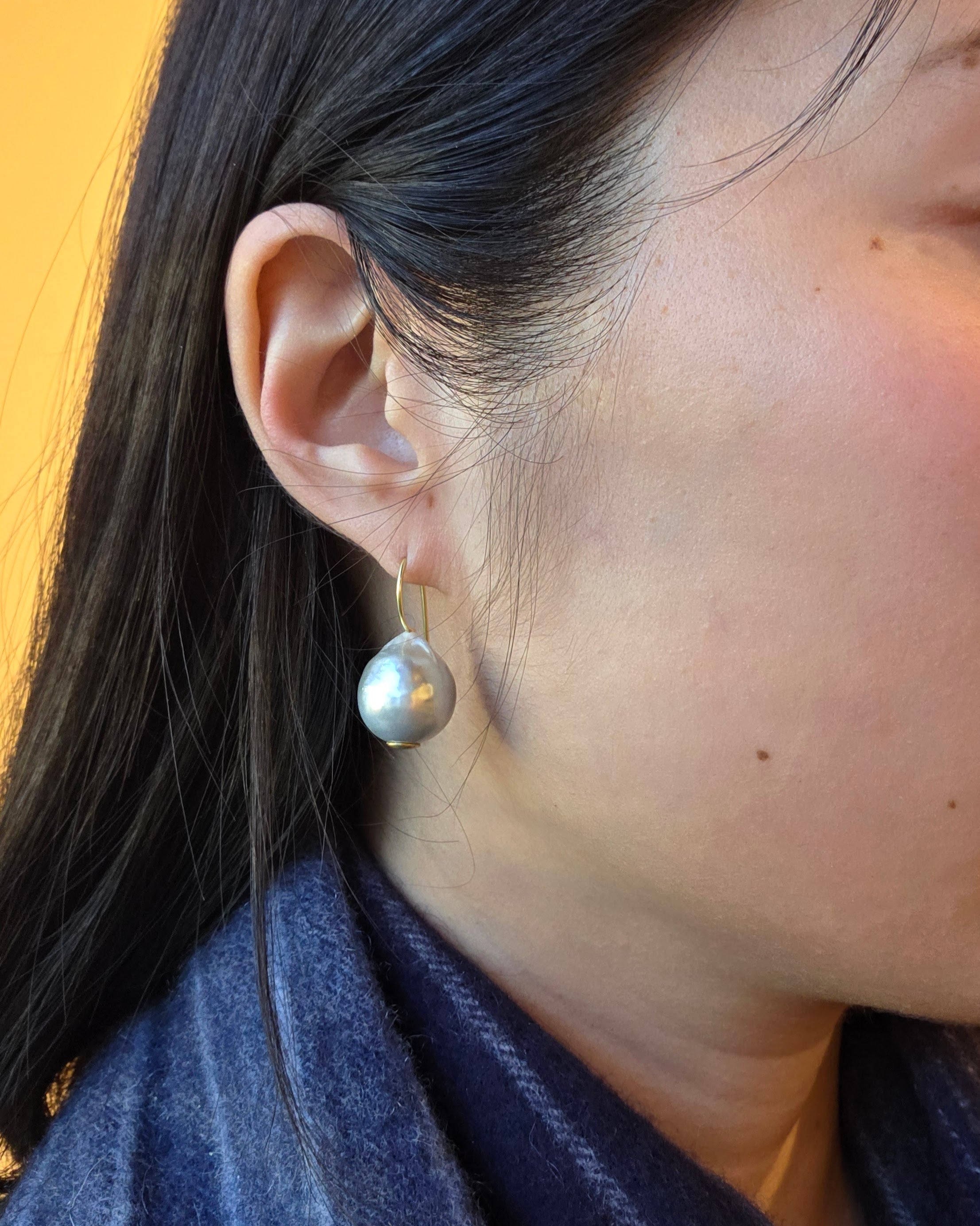 Light Grey Baroque Pearl Earrings with 18k Gold Bottom Caps and Wirestahitian pearls, 18k gold