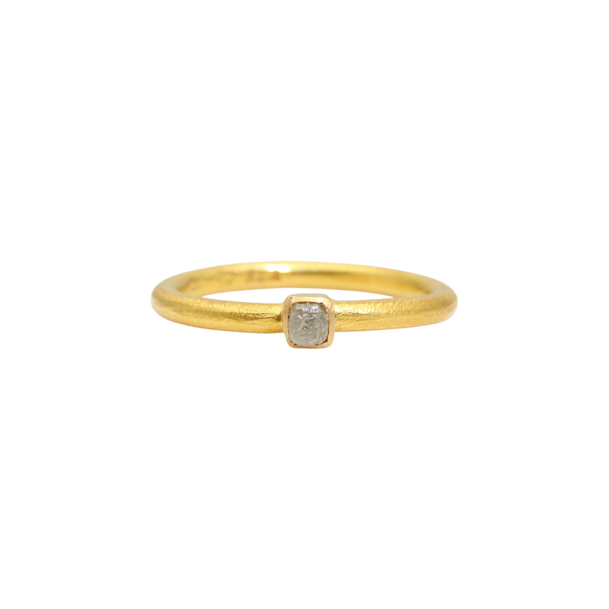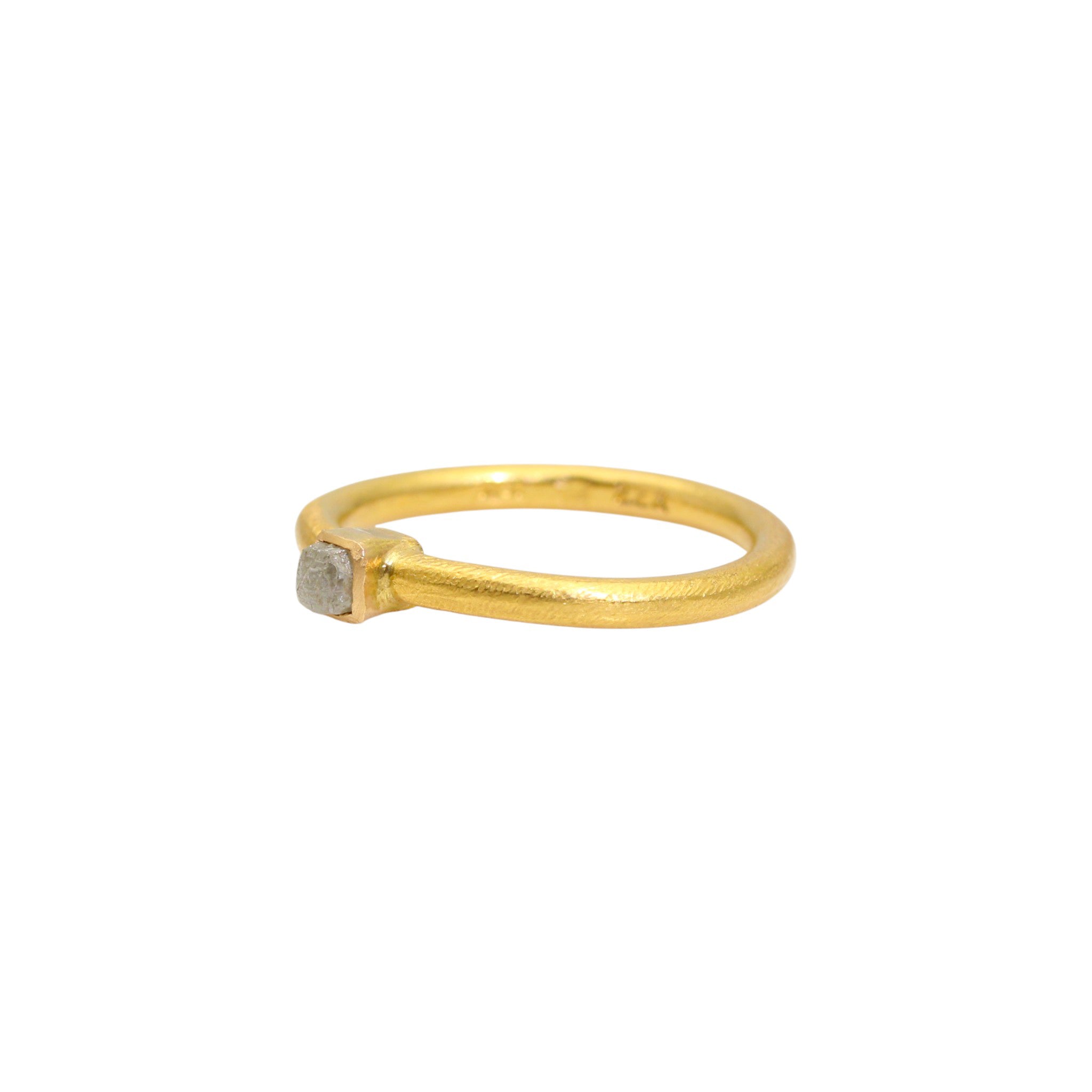 Light Grey Raw Diamond Cube Ring in 22k & 18k Yellow Gold18k yellow gold, 22k yellow gold, raw diamond