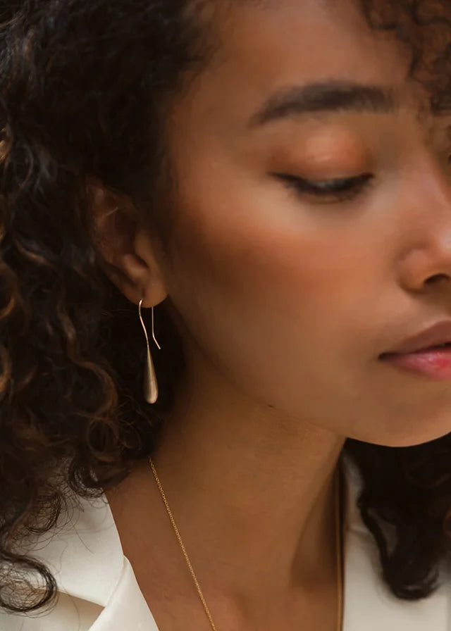 Long Drop Earrings with Diamonds in 14k Gold14k yellow gold, reclaimed diamond melee